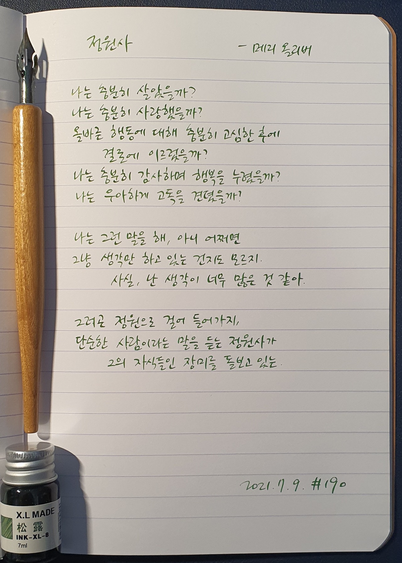 #정원사 #메리올리버 #TheGardner #MaryOliver #시필사 #닙펜 #딥펜 #펜글씨 #손글씨 #매일시쓰기 #1일1시 #하루에시한편 #이른아침을먹던여름 #thatsummerwithyou