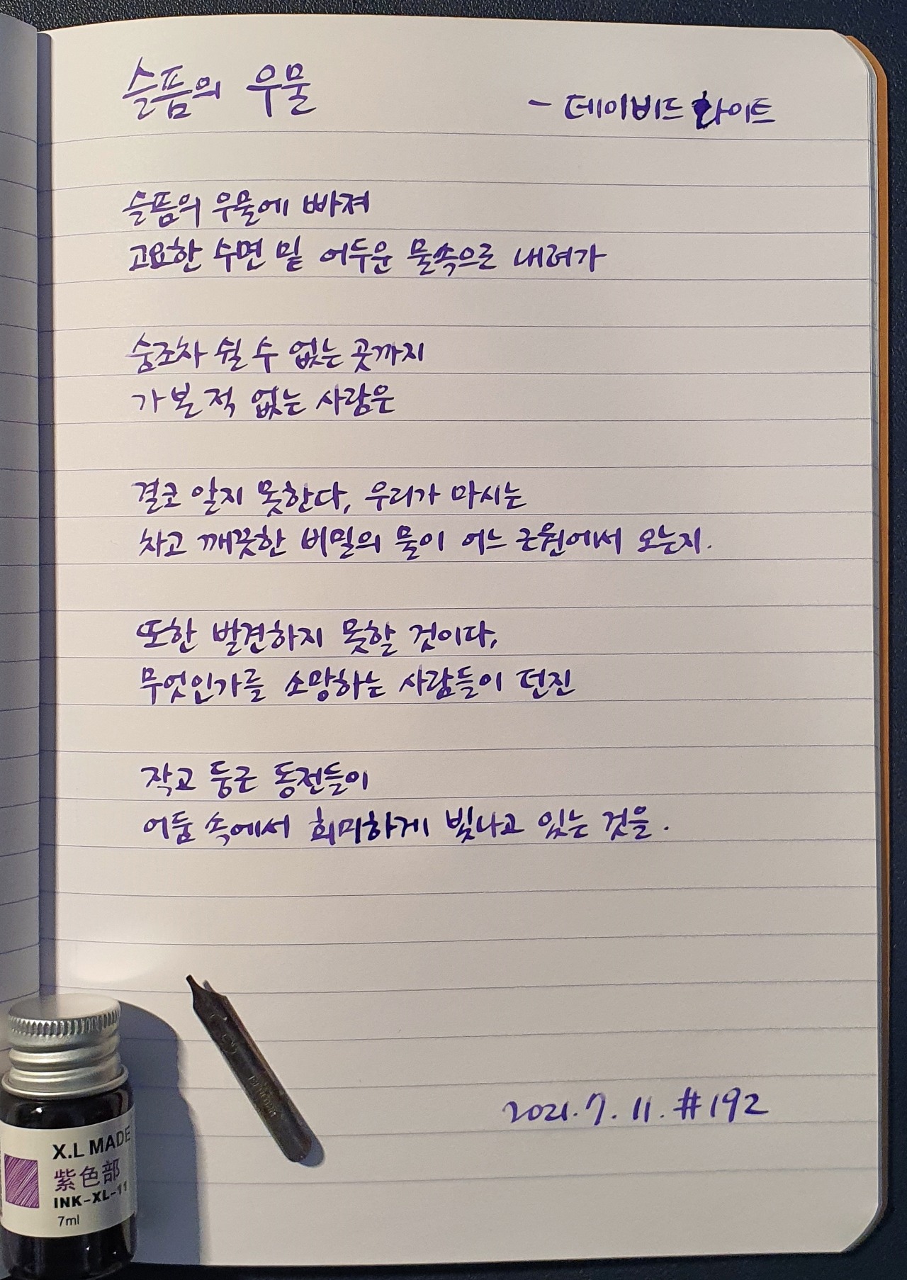 #슬픔의우물 #데이비드화이트 #시필사 #닙펜 #딥펜 #펜글씨 #손글씨 #매일시쓰기 #1일1시 #하루에시한편 #이른아침을먹던여름 #thatsummerwithyou