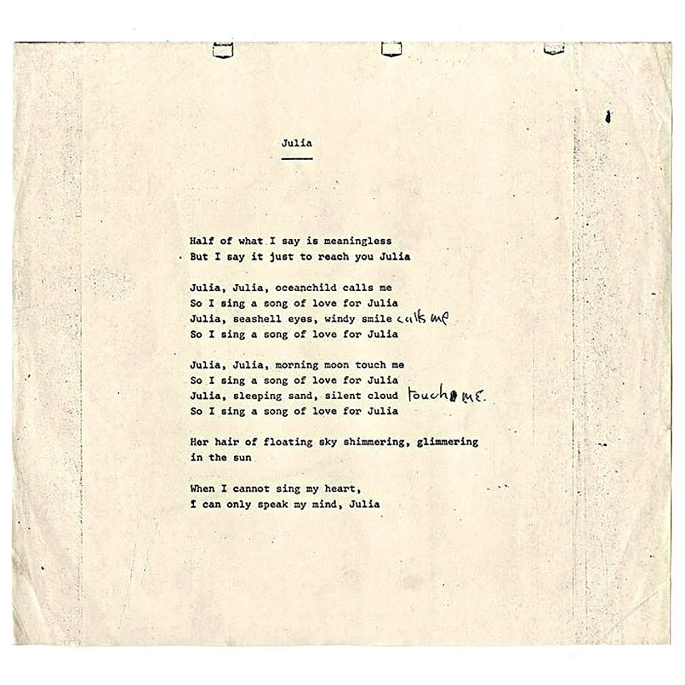 줄리아는 존 레넌의 엄마(3월 12일 생-미쿡과의 시차상 오늘이 기일) 이름이고, 어릴 때 자신을 떠나가 버린 엄마를 그리며 만든 곡이라고 해요.