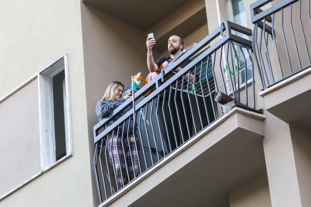 '이동금지' 이탈리아 사람들이 베란다로 나와 노래를 부르고 있다