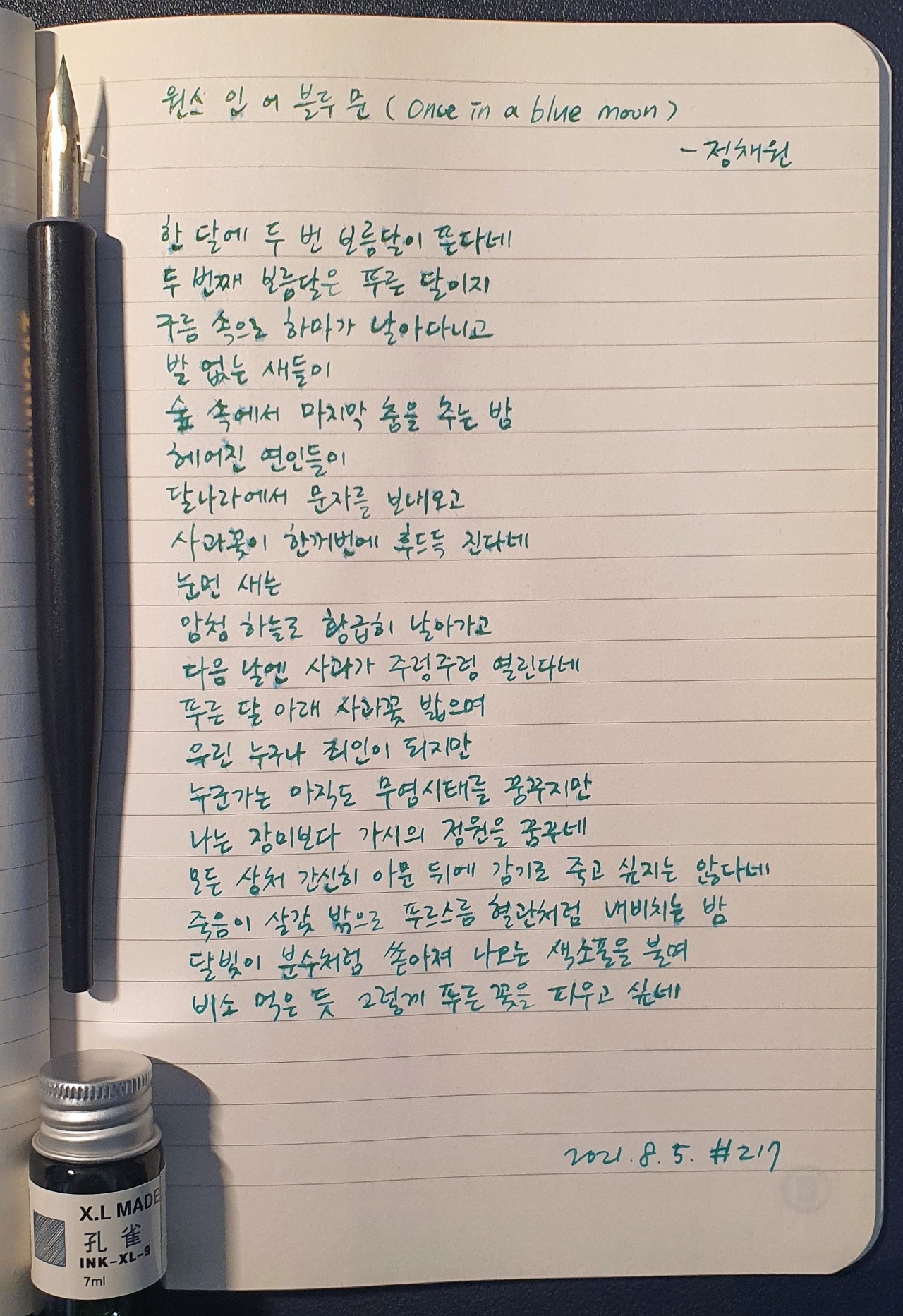 #원스인어블루문 #Onceinabluemoon #정채원 #시필사 #닙펜 #딥펜 #펜글씨 #손글씨 #매일시쓰기 #1일1시 #하루에시한편 #이른아침을먹던여름 #thatsummerwithyou