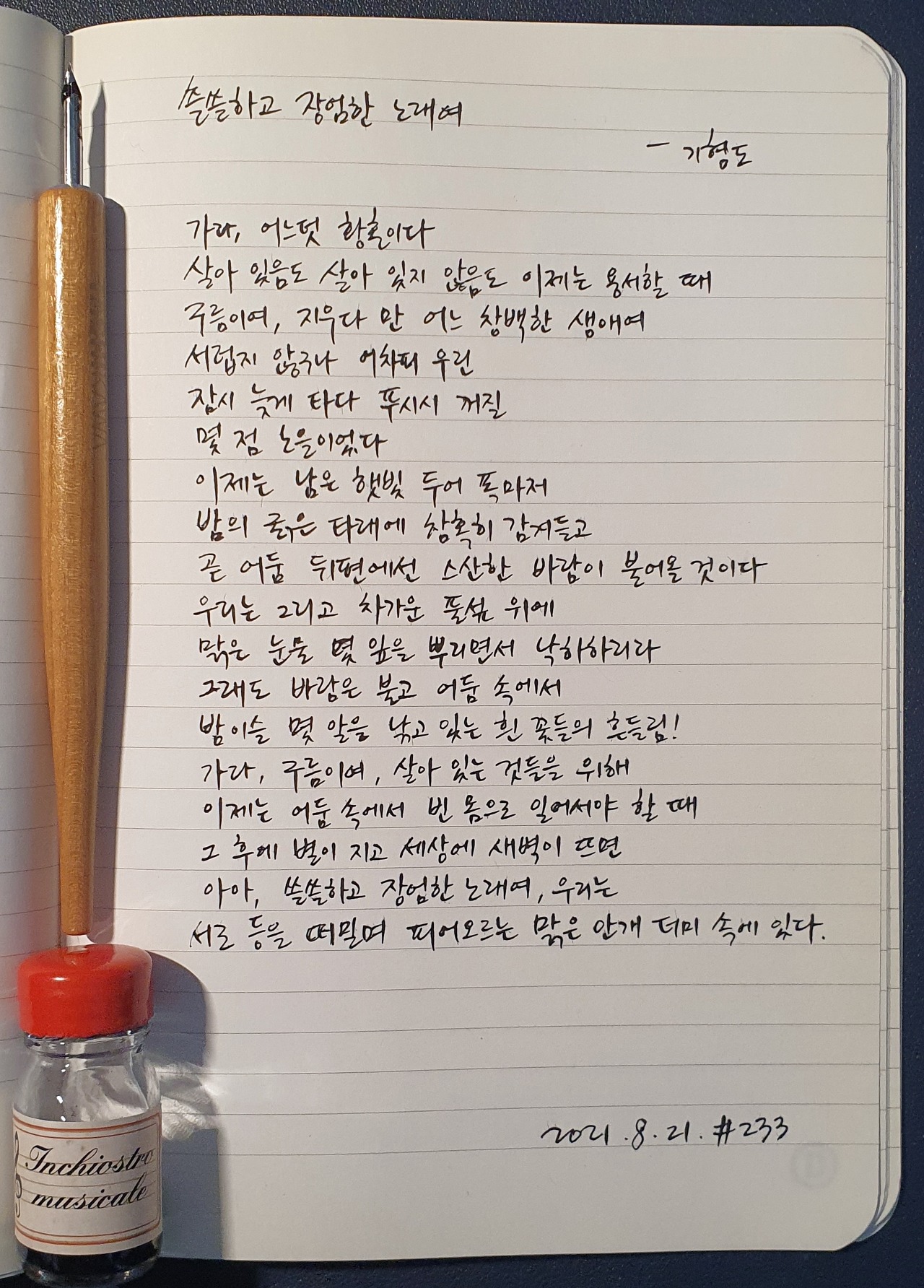 #쓸쓸하고장엄한노래여 #기형도 #시필사 #닙펜 #딥펜 #펜글씨 #손글씨 #매일시쓰기 #1일1시 #하루에시한편 #이른아침을먹던여름 #thatsummerwithyou