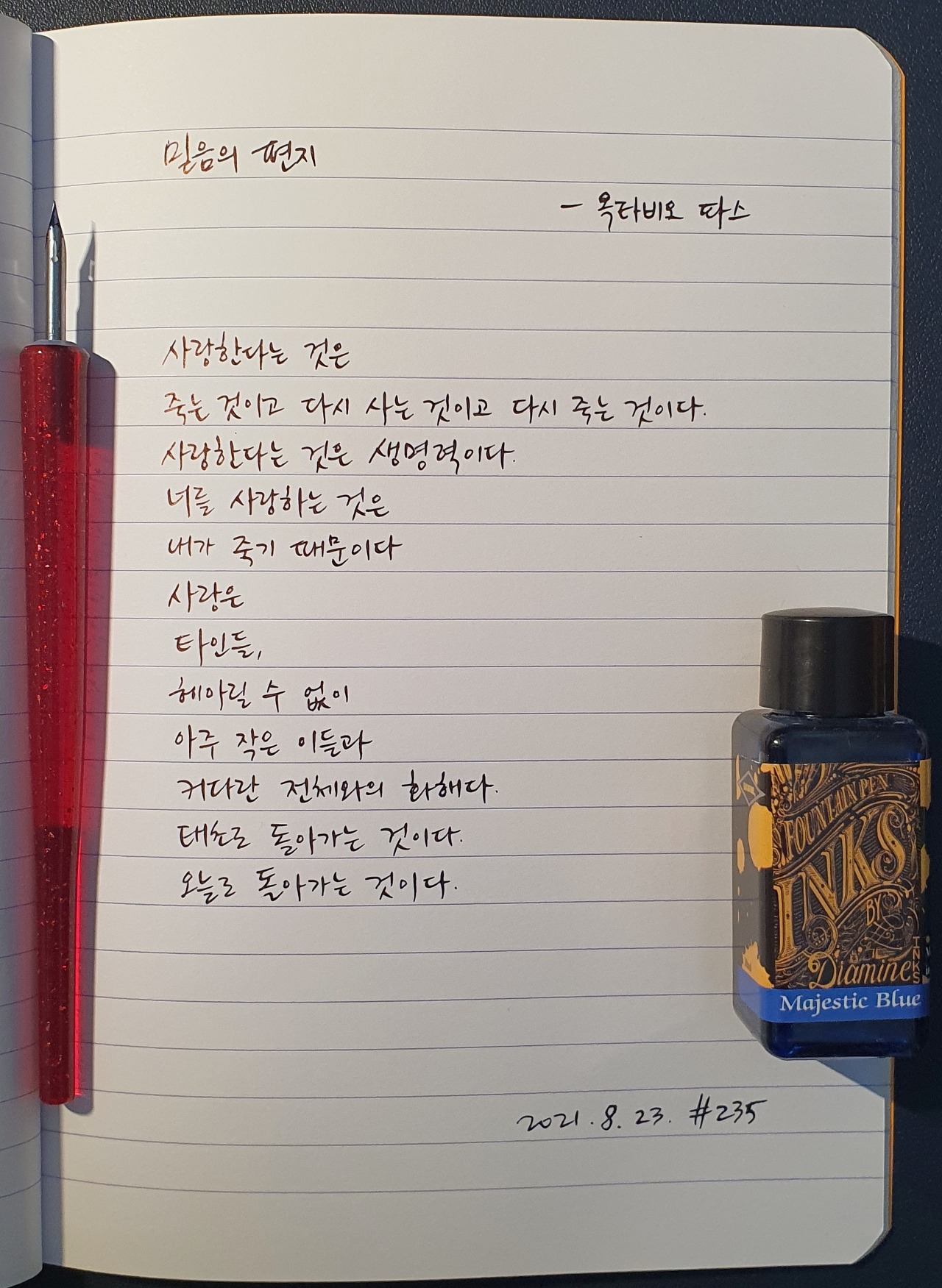#믿음의편지 #옥타비오파스 #옥따비오빠스 #OctavioPaz #시필사 #닙펜 #딥펜 #펜글씨 #손글씨 #매일시쓰기 #1일1시 #하루에시한편 #이른아침을먹던여름 #thatsummerwithyou
