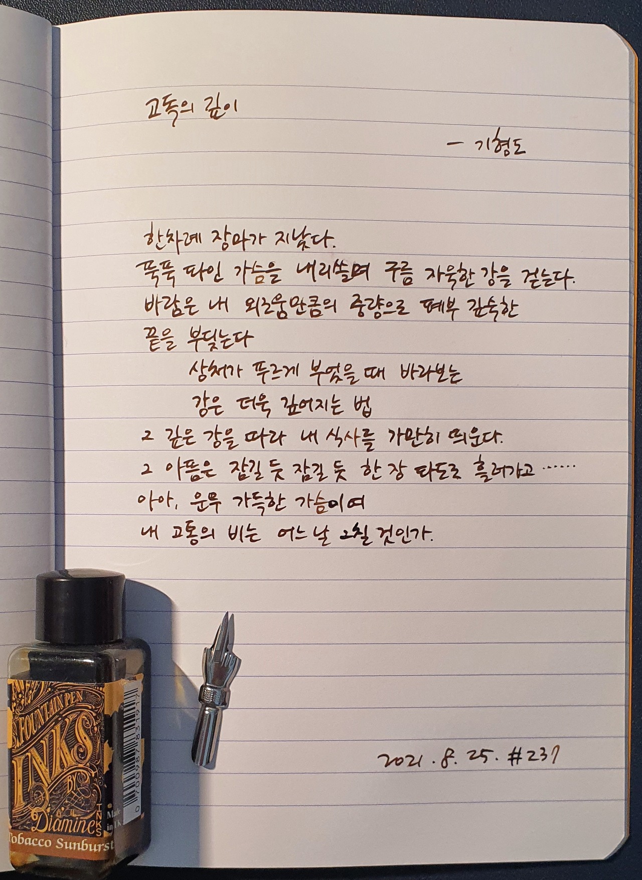 #고독의깊이 #기형도 #시필사 #닙펜 #딥펜 #펜글씨 #손글씨 #매일시쓰기 #1일1시 #하루에시한편 #이른아침을먹던여름 #thatsummerwithyou