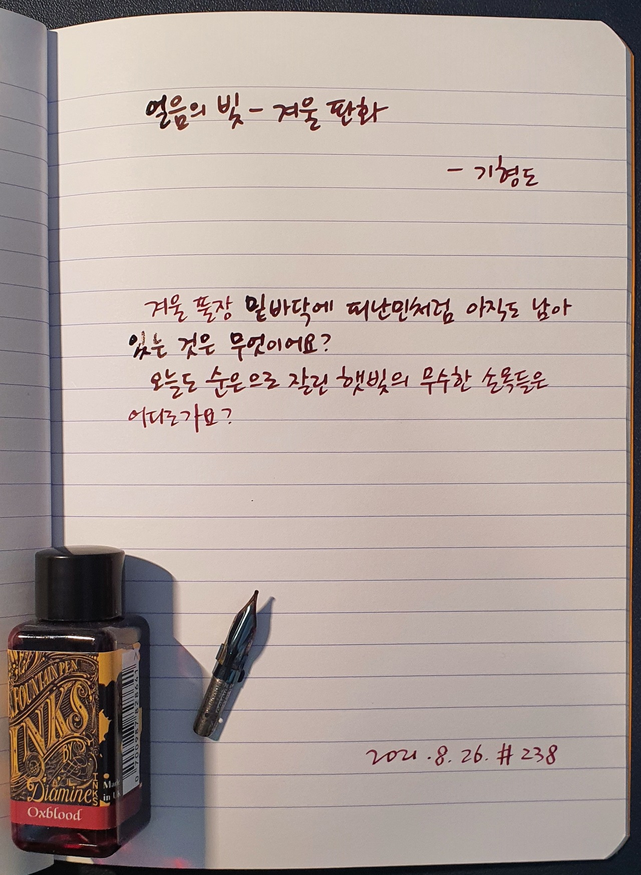 #얼음의빛 #겨울판화 #기형도 #시필사 #닙펜 #딥펜 #펜글씨 #손글씨 #매일시쓰기 #1일1시 #하루에시한편 #이른아침을먹던여름 #thatsummerwithyou