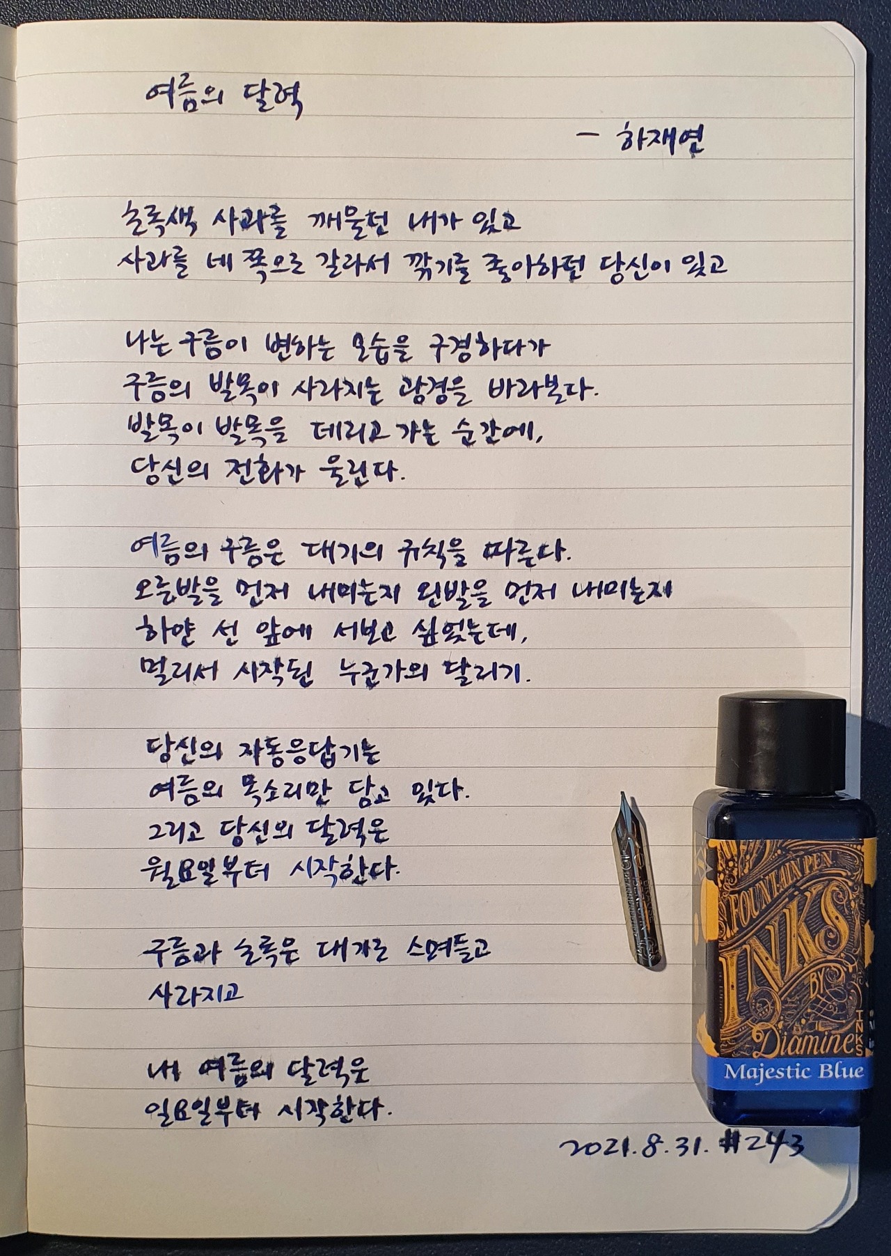 #여름의달력 #하재연 #시필사 #닙펜 #딥펜 #펜글씨 #손글씨 #매일시쓰기 #1일1시 #하루에시한편 #이른아침을먹던여름 #thatsummerwithyou