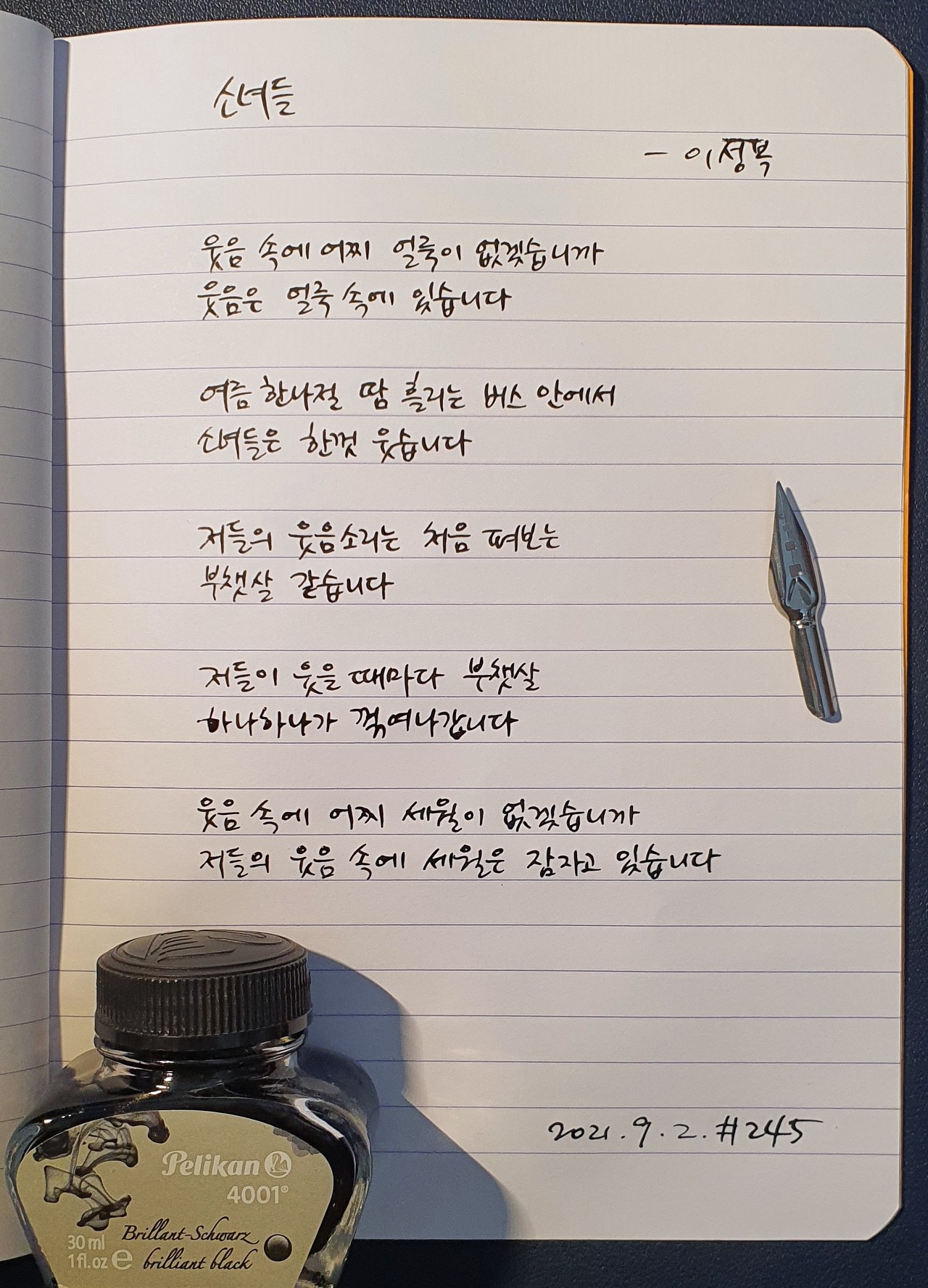 #소녀들 #이성복 #시필사 #닙펜 #딥펜 #펜글씨 #손글씨 #매일시쓰기 #1일1시 #하루에시한편 #이른아침을먹던여름 #thatsummerwithyou