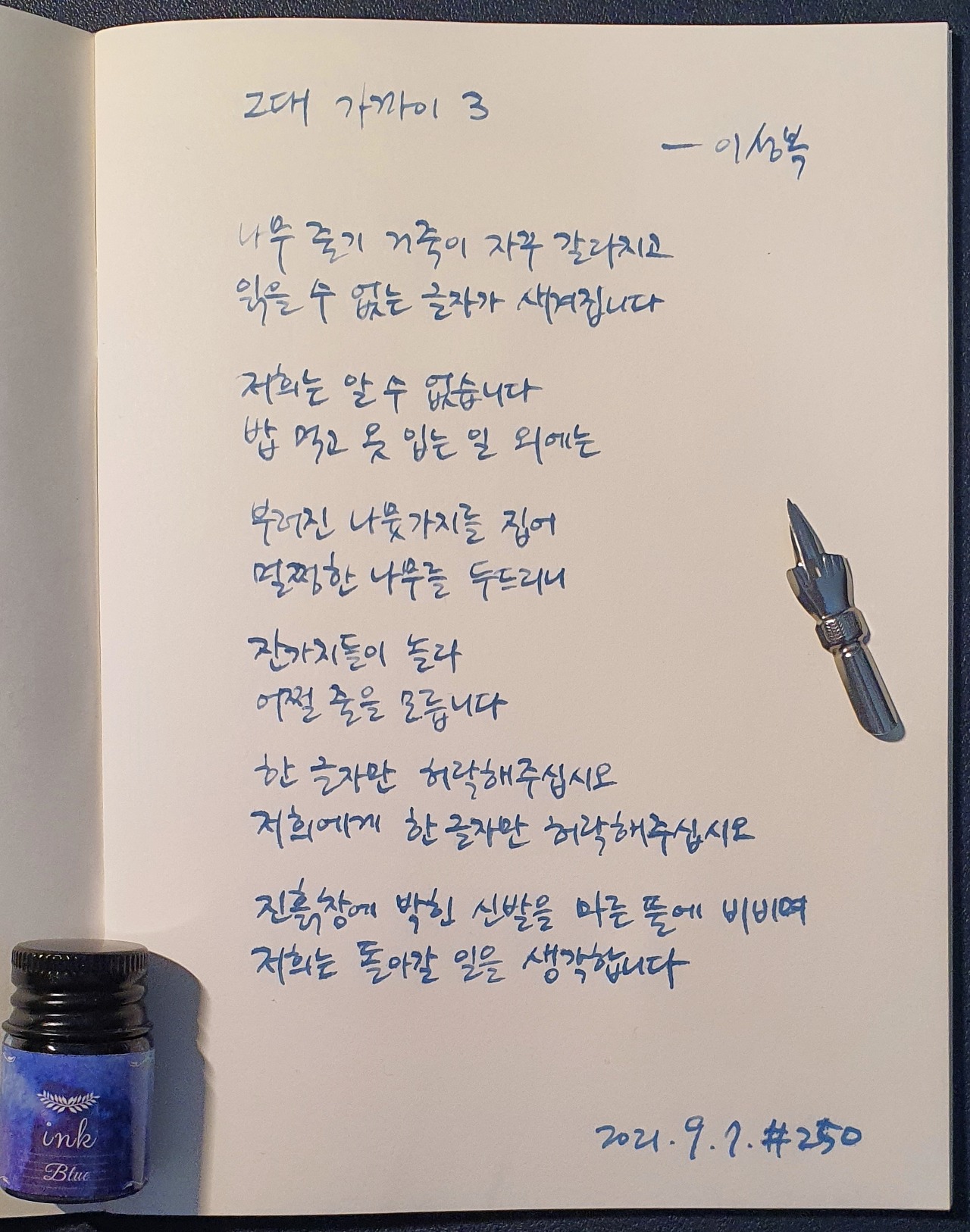 #그대가까이3 #이성복 #시필사 #닙펜 #딥펜 #펜글씨 #손글씨 #매일시쓰기 #1일1시 #하루에시한편 #이른아침을먹던여름 #thatsummerwithyou