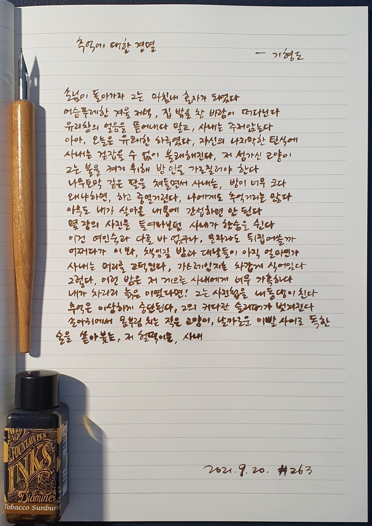 #추억에대한경멸 #기형도 #시필사 #닙펜 #딥펜 #펜글씨 #손글씨 #매일시쓰기 #1일1시 #하루에시한편 #이른아침을먹던여름 #thatsummerwithyou