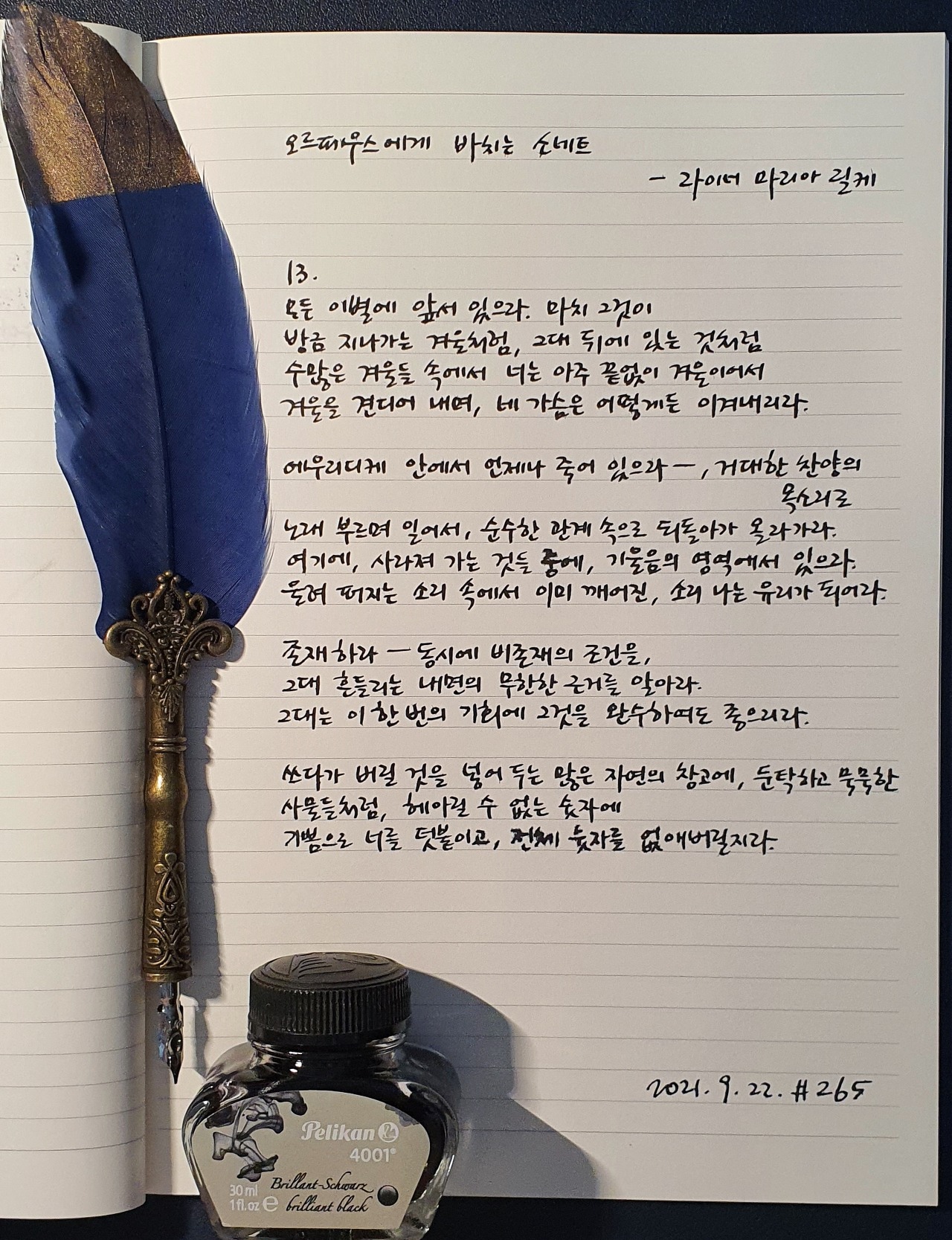 #오르페우스에게바치는소네트 #라이너마리아릴케 #시필사 #닙펜 #딥펜 #펜글씨 #손글씨 #매일시쓰기 #1일1시 #하루에시한편 #이른아침을먹던여름 #thatsummerwithyou