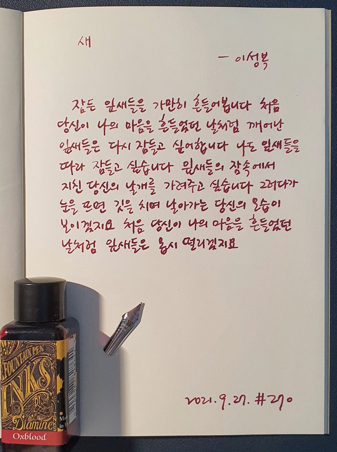 #새 #이성복 #시필사 #닙펜 #딥펜 #펜글씨 #손글씨 #매일시쓰기 #1일1시 #하루에시한편 #이른아침을먹던여름 #thatsummerwithyou