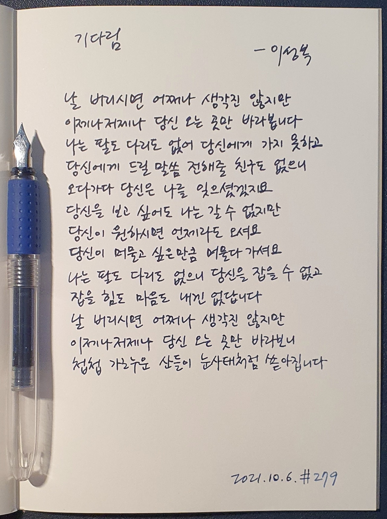 #기다림 #이성복 #시필사 #만년필 #펜글씨 #손글씨 #매일시쓰기 #1일1시 #하루에시한편 #이른아침을먹던여름 #thatsummerwithyou