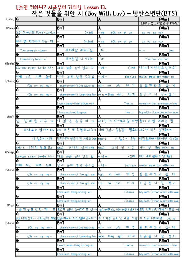 #놀면뭐하니지금부터기타 #복습 #작은것들을위한시 #BoywithLove #방탄소년단 #BTS #요약악보 #통기타교본 #통기타교재 #통기타배우기 #통기타레슨 #통기타왕초보 #통기타독학 #통기타 #기타리스트박지은 #음악세계 #카카오프로젝트100 #플백 #유캔두 #일단백챌린지 #백일프로젝트 #온라인강의 #언택트레슨 #비대면수업 #무료강의 #저자직강