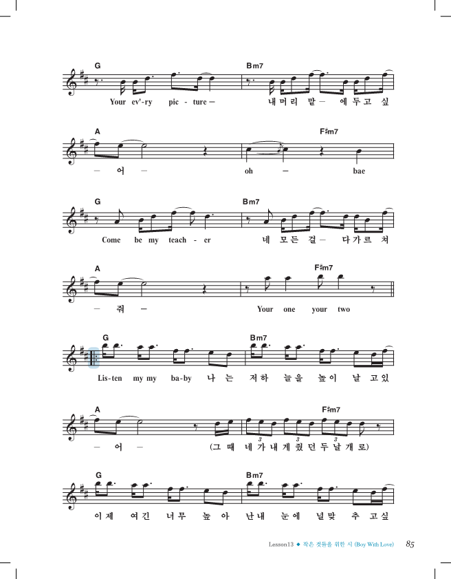 *오늘의 과제 : 작은 것들을 위한 시 - 동영상 틀어놓고, 3번 이상씩 반복 연습하기