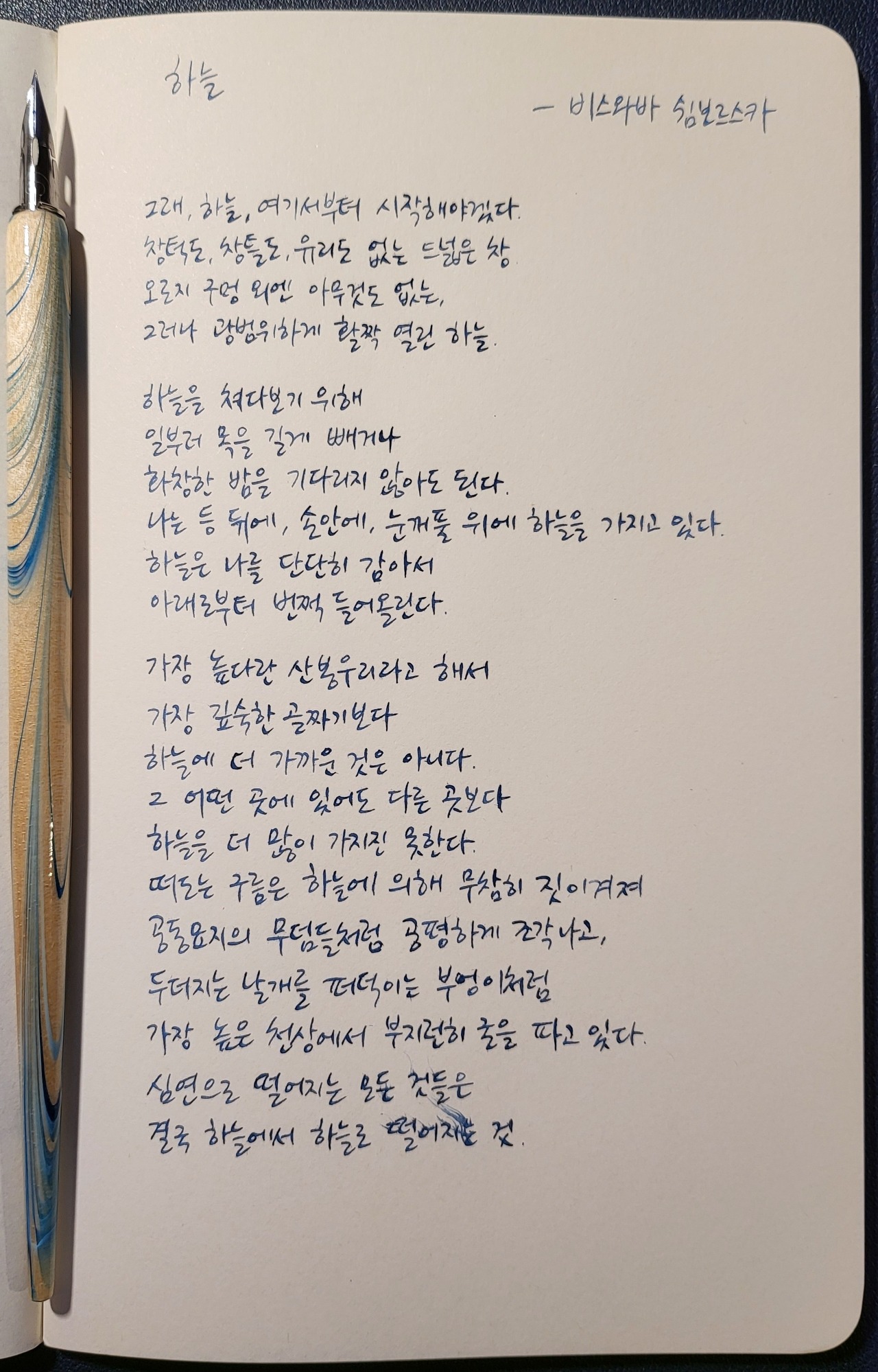 #하늘 #비스와바쉼보르스카 #끝과시작 #너에게들려주는시 #poetrytoyou #시 #시낭독 #시낭송 #낭독일기 #시필사 #손글씨 #닙펜 #딥펜 #펜글씨 #마이마르스 #mymars #나의화성