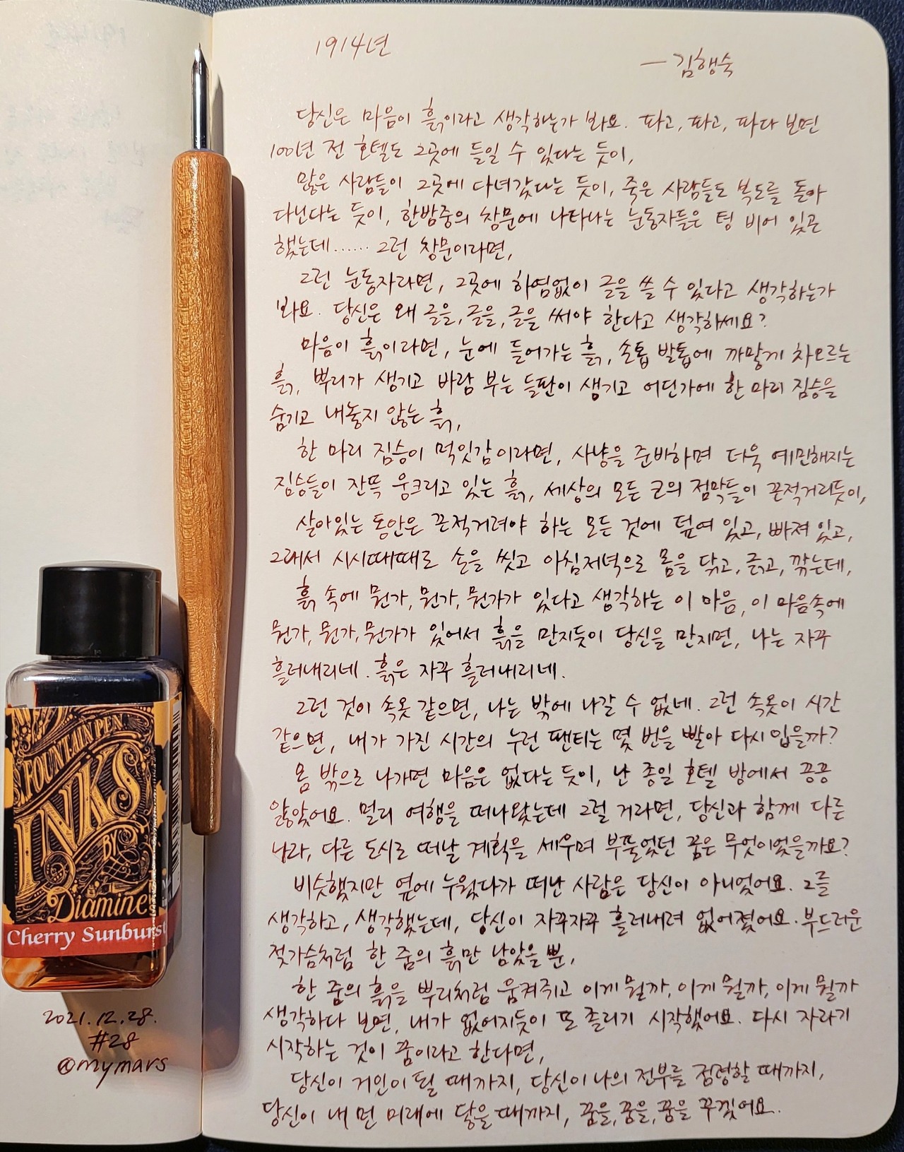 #1914년 #김행숙 #너에게들려주는시 #poetrytoyou #시 #시낭독 #시낭송 #낭독일기 #시필사 #손글씨 #닙펜 #딥펜 #펜글씨 #마이마르스 #mymars #나의화성