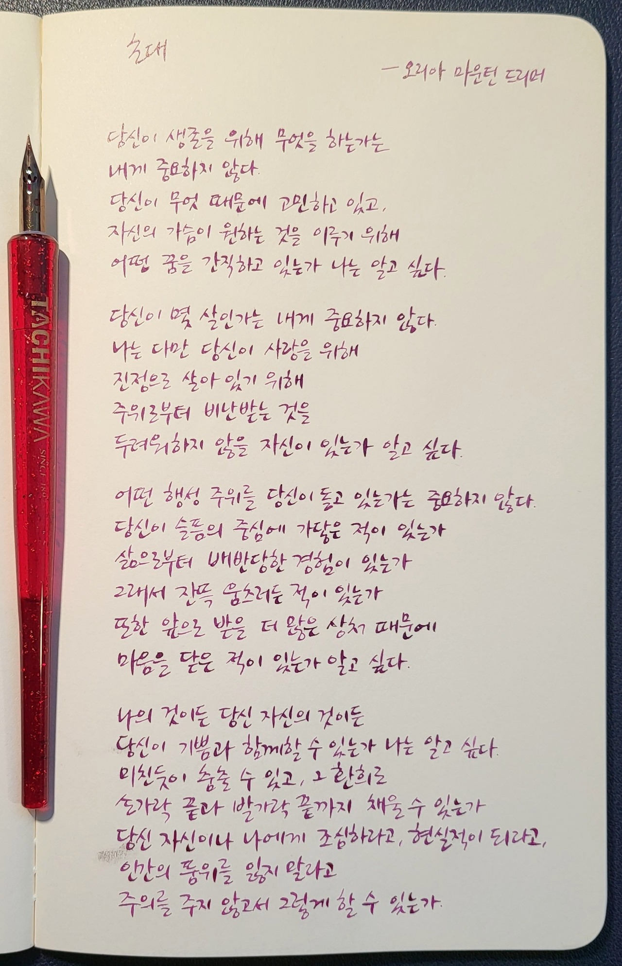 #초대 #오리아마운틴드리머 #사랑하라한번도상처받지않은것처럼 #너에게들려주는시 #poetrytoyou #시 #시낭독 #시낭송 #낭독일기 #시필사 #손글씨 #닙펜 #딥펜 #펜글씨 #마이마르스 #mymars #나의화성