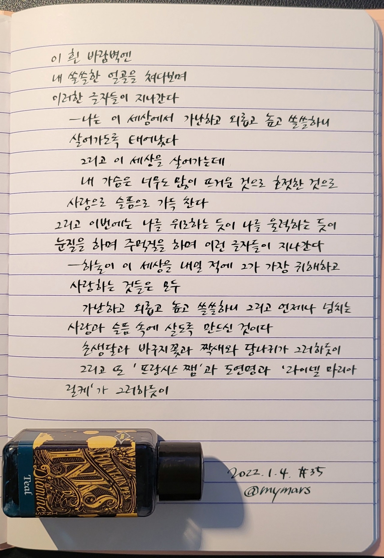 #흰바람벽이있어 #백석 #사슴 #너에게들려주는시 #poetrytoyou #시 #시낭독 #시낭송 #낭독일기 #시필사 #손글씨 #닙펜 #딥펜 #펜글씨 #마이마르스 #mymars #나의화성