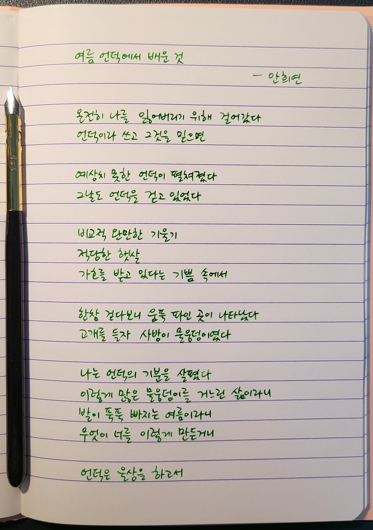 #여름언덕에서배운것 #안희연 #너에게들려주는시 #poetrytoyou #시 #시낭독 #시낭송 #낭독일기 #시필사 #손글씨 #닙펜 #딥펜 #펜글씨 #마이마르스 #mymars #나의화성