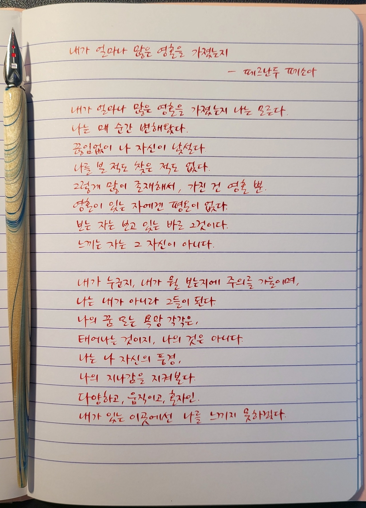 #내가얼마나많은영혼을가졌는지 #페르난두페소아 #페르난도페소아 #너에게들려주는시 #poetrytoyou #시 #시낭독 #시낭송 #낭독일기 #시필사 #손글씨 #닙펜 #딥펜 #펜글씨 #마이마르스 #mymars #나의화성