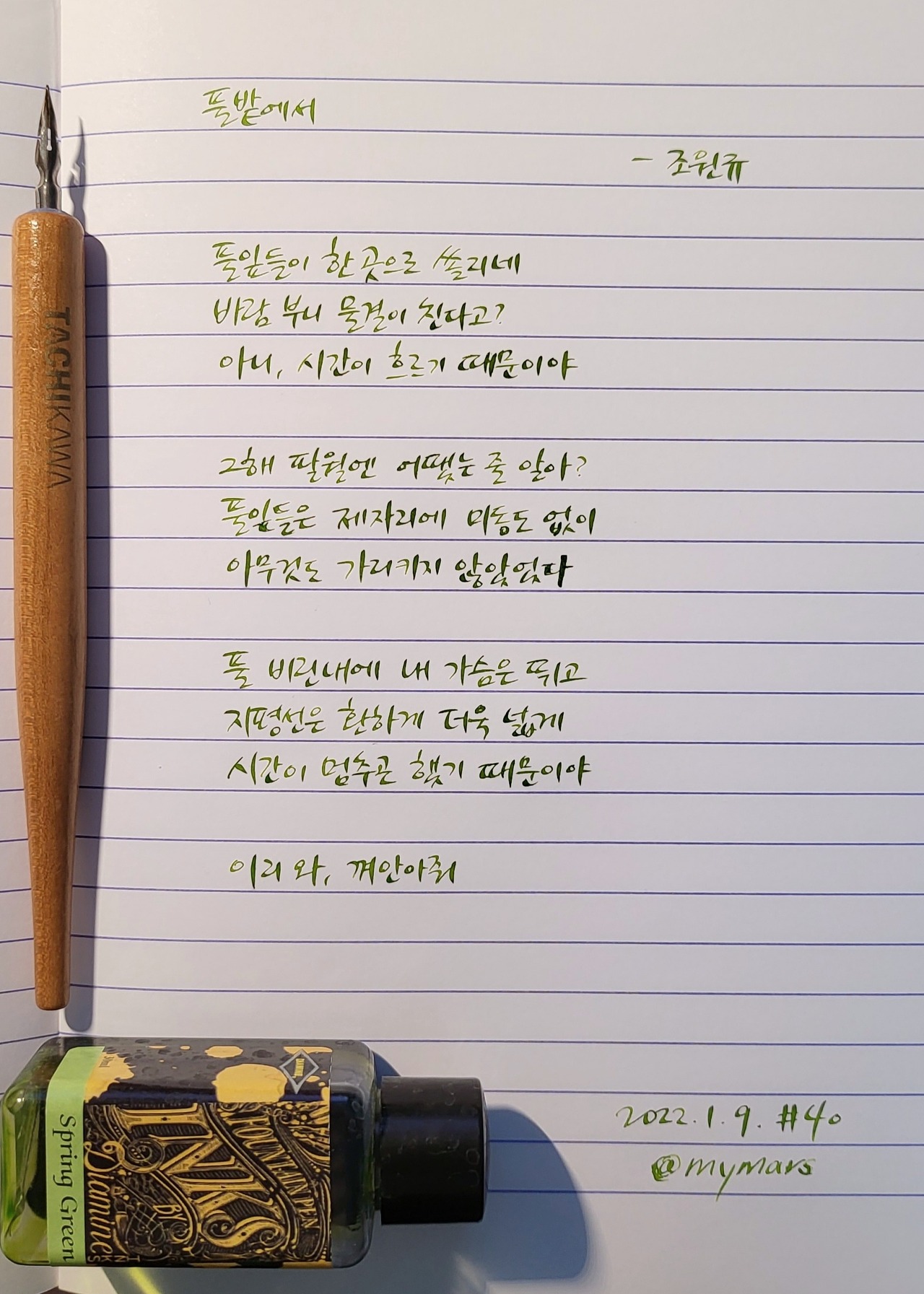 #풀밭에서 #조원규 #밤의바다를건너 #너에게들려주는시 #poetrytoyou #시 #시낭독 #시낭송 #낭독일기 #시필사 #손글씨 #닙펜 #딥펜 #펜글씨 #마이마르스 #mymars #나의화성