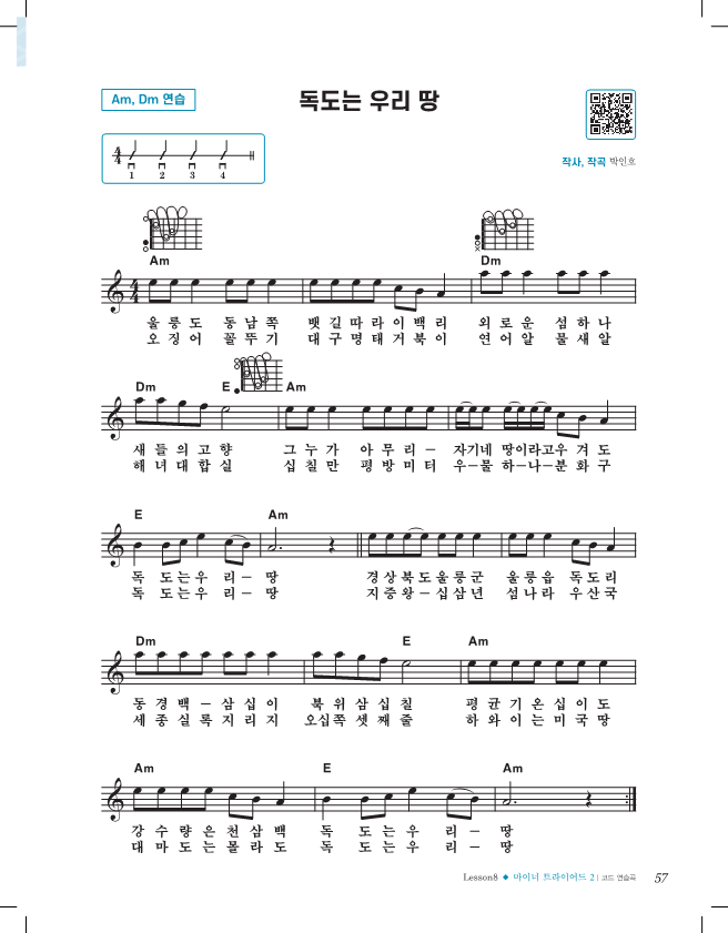 Am - Dm - E 코드 연습곡인 '독도는 우리 땅'입니다.