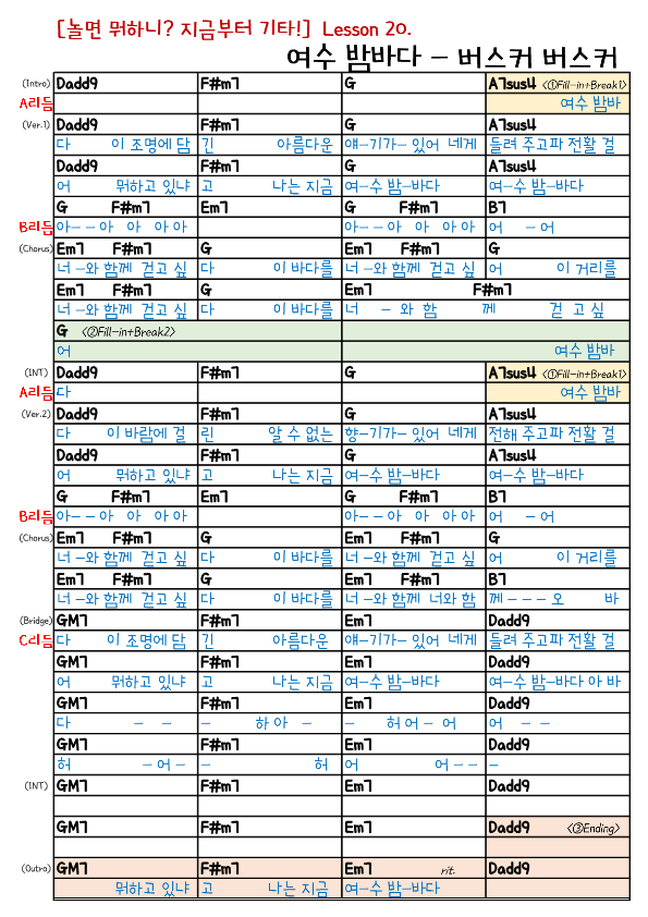 *오늘의 과제 : 여수 밤바다 - 동영상 틀어놓고, 3번 이상씩 반복 연습하기
