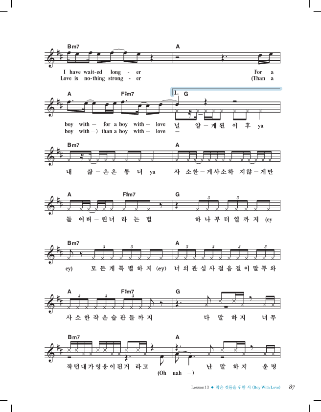 *오늘의 과제 : 작은 것들을 위한 시 - 동영상 틀어놓고, 3번 이상씩 반복 연습하기