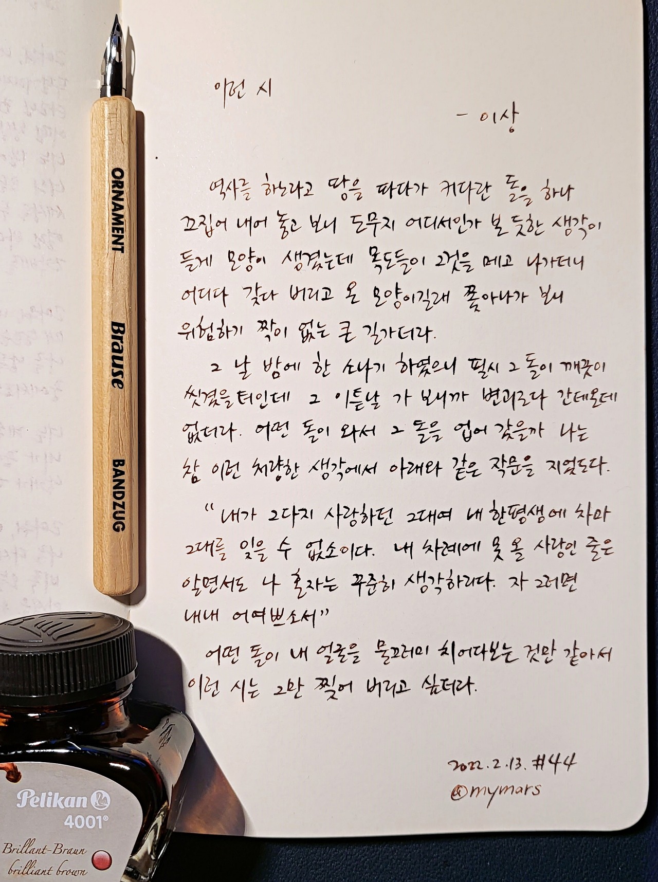 #이런시 #이상 #날개 #오감도 #너에게들려주는시 #poetrytoyou #시 #시낭독 #시낭송 #낭독일기 #시필사 #손글씨 #닙펜 #딥펜 #펜글씨 #마이마르스 #mymars #나의화성