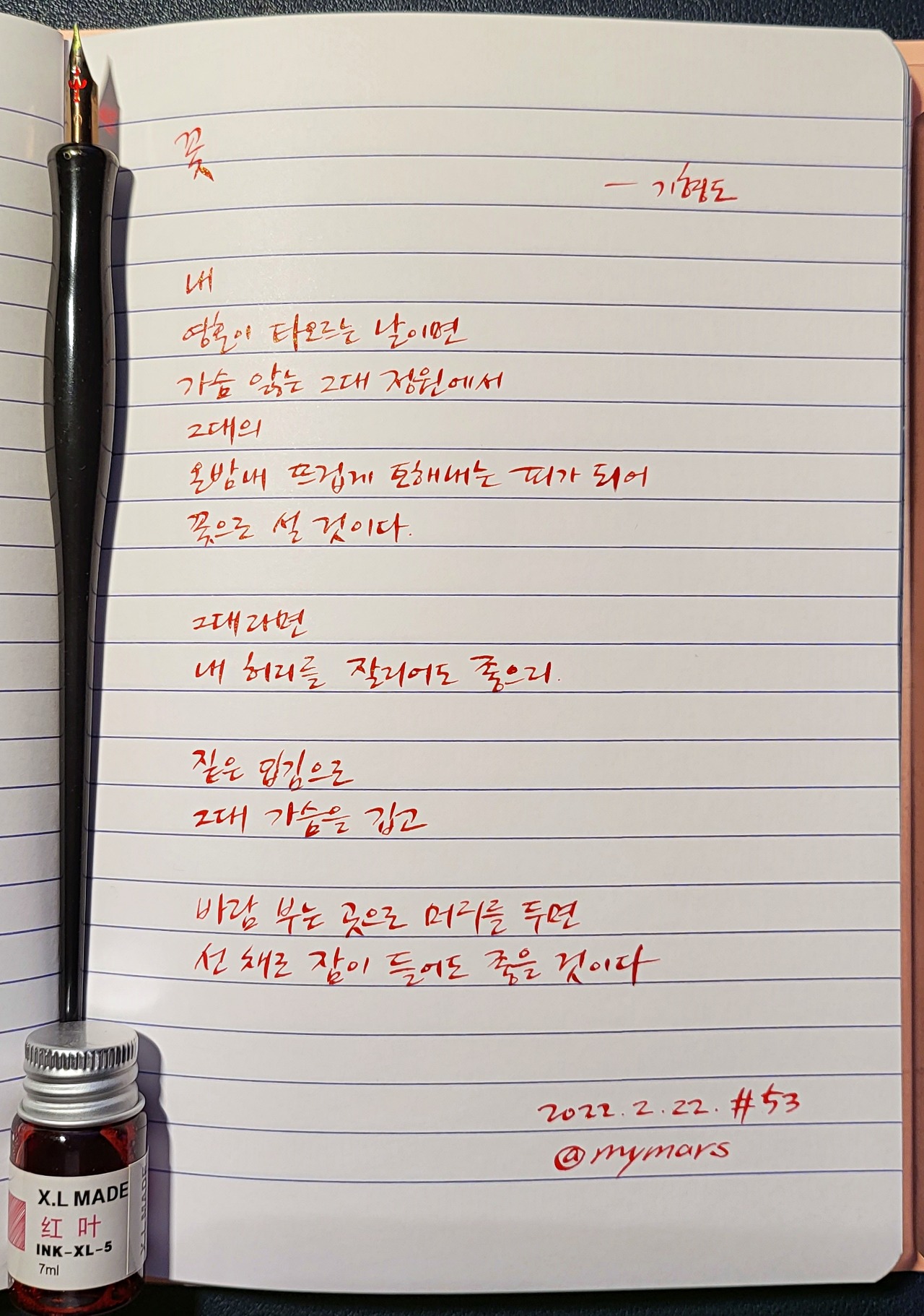 #꽃 #기형도 #길위에서중얼거리다 #너에게들려주는시 #poetrytoyou #시 #시낭독 #시낭송 #낭독일기 #시필사 #손글씨 #닙펜 #딥펜 #펜글씨 #마이마르스 #mymars #나의화성