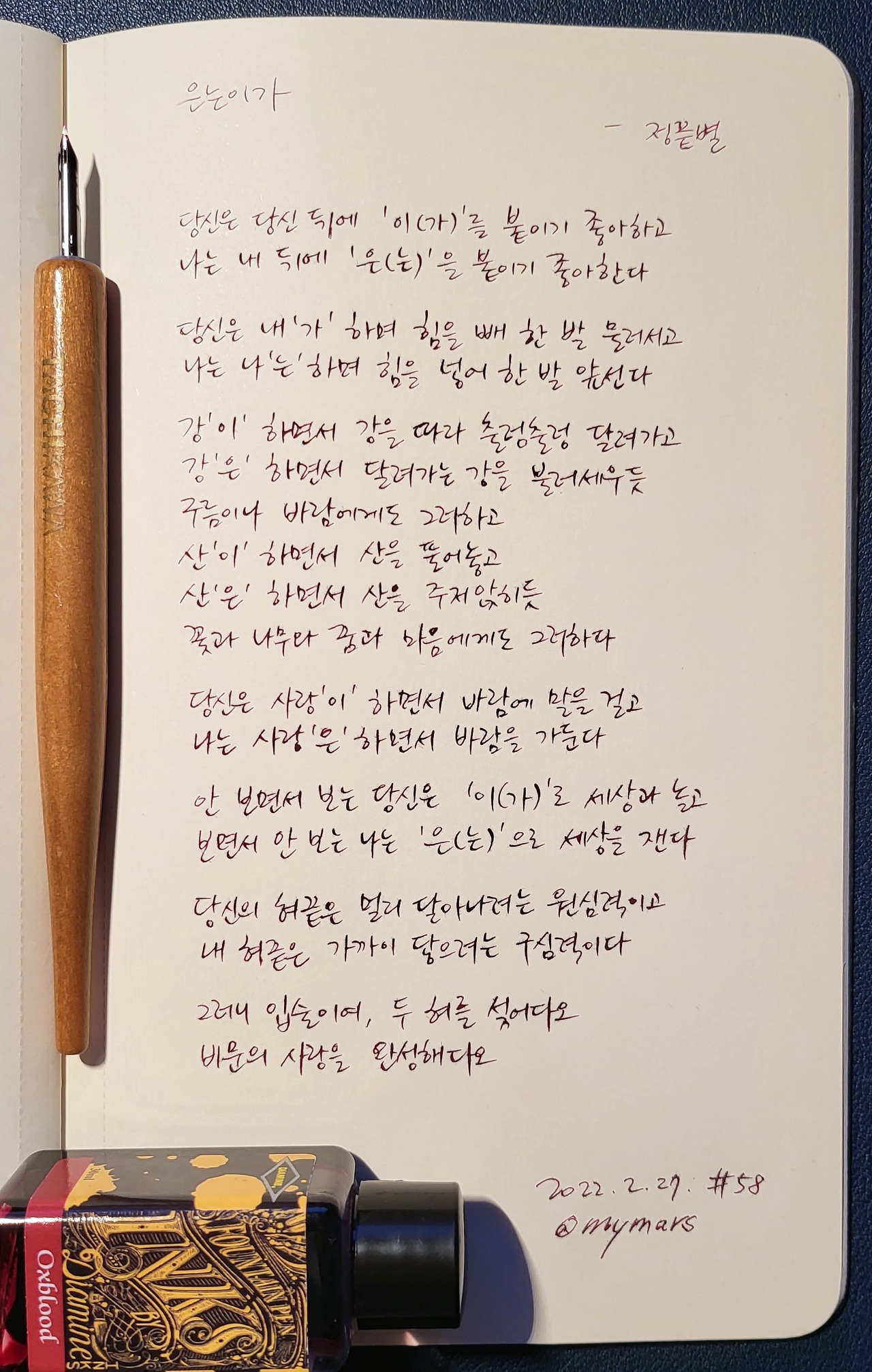 #은는이가 #정끝별 #너에게들려주는시 #poetrytoyou #시 #시낭독 #시낭송 #낭독일기 #시필사 #손글씨 #닙펜 #딥펜 #펜글씨 #마이마르스 #mymars #나의화성
