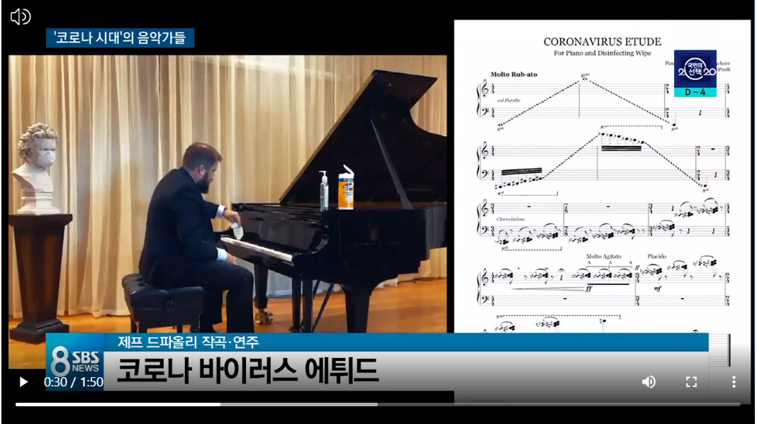 피아노 건반을 소독제로 닦으면서 나는 소리를 악보로 옮긴 '코로나 바이러스 에튀드' ㅋㅋㅋㅋㅋ