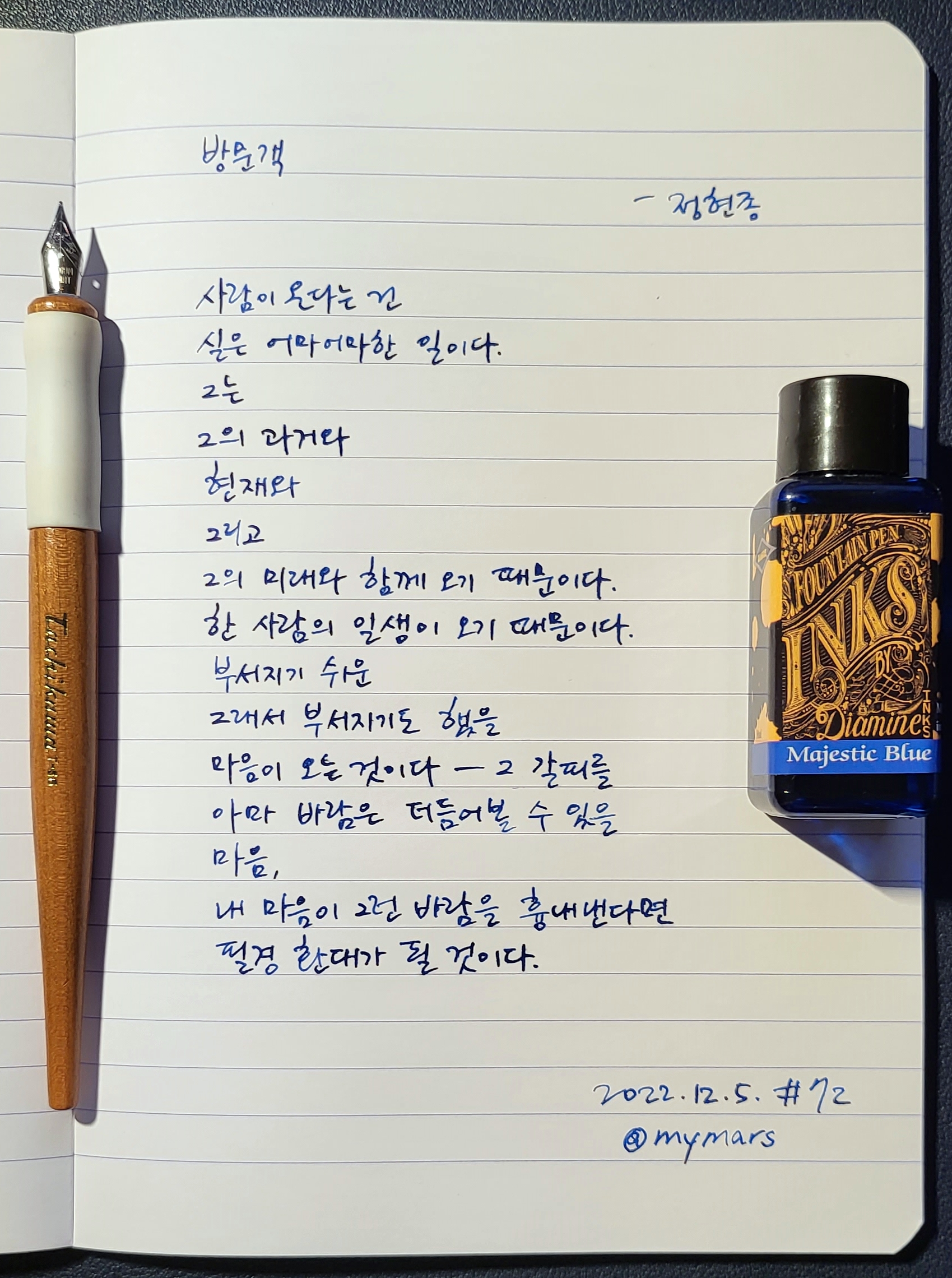 #방문객 #정현종 #광휘의속삭임 #너에게들려주는시 #poetrytoyou #시 #시낭독 #시낭송 #낭독일기 #시필사 #손글씨 #닙펜 #딥펜 #펜글씨 #마이마르스 #mymars #나의화성