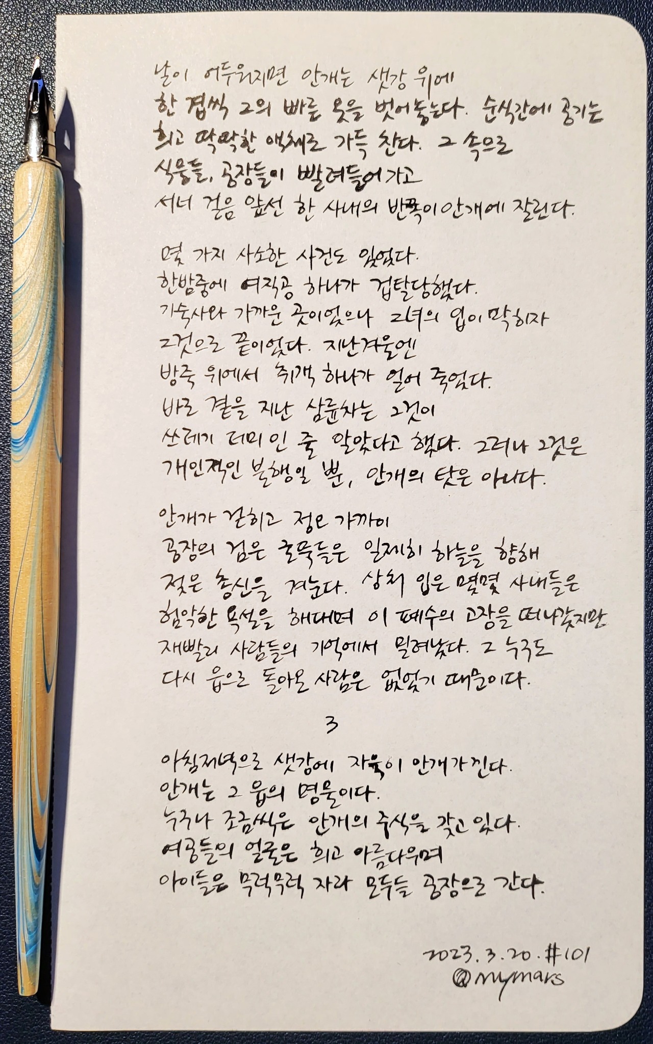 #안개 #기형도 #입속의검은잎 #너에게들려주는시 #poetrytoyou #시 #시낭독 #시낭송 #낭독일기 #시필사 #손글씨 #닙펜 #딥펜 #펜글씨 #마이마르스 #mymars #나의화성