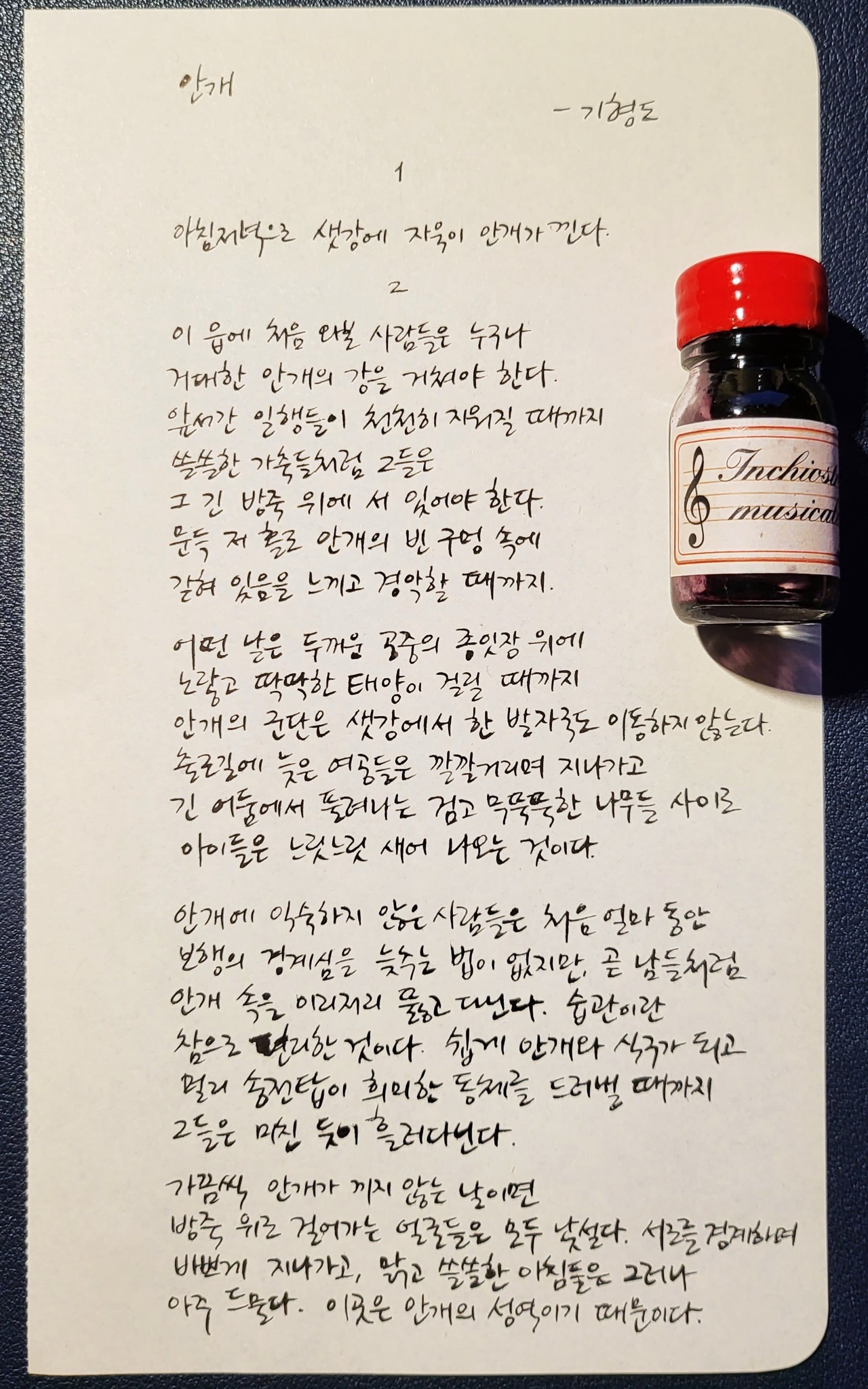#안개 #기형도 #입속의검은잎 #너에게들려주는시 #poetrytoyou #시 #시낭독 #시낭송 #낭독일기 #시필사 #손글씨 #닙펜 #딥펜 #펜글씨 #마이마르스 #mymars #나의화성