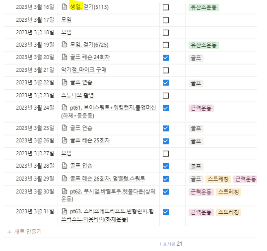운동 외의 매일 하는 프로젝트를 줄이고 4월에는 요일별로 나눠서 하는 방식으로 계획을 세워봐야겠다.