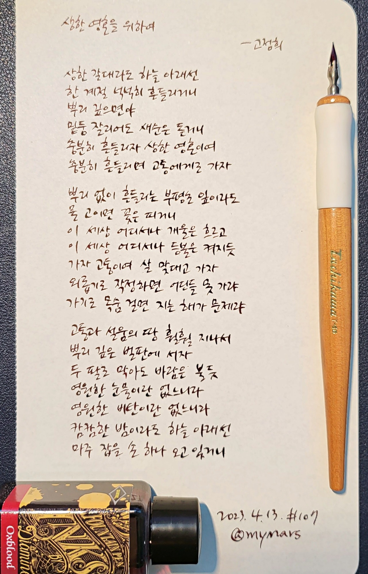 #상한영혼을위하여 #고정희 #이시대의아벨 #너에게들려주는시 #poetrytoyou #시 #시낭독 #시낭송 #낭독일기 #시필사 #손글씨 #닙펜 #딥펜 #펜글씨 #마이마르스 #mymars #나의화성