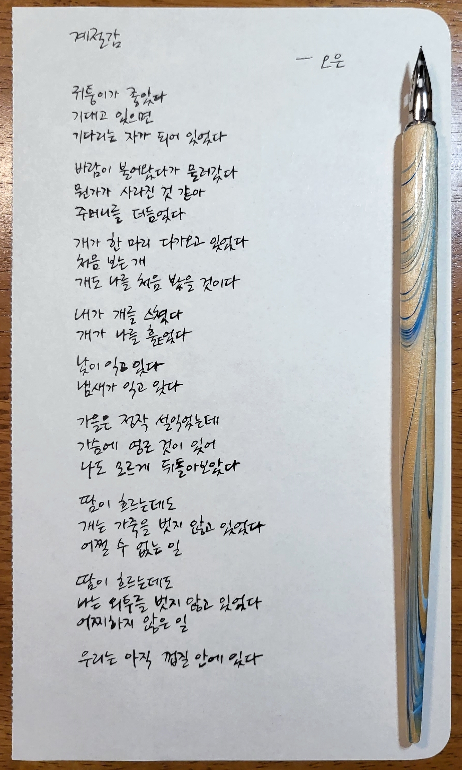 #계절감 #오은 #유에서유 #너에게들려주는시 #poetrytoyou #시 #시낭독 #시낭송 #낭독일기 #시필사 #손글씨 #닙펜 #딥펜 #펜글씨 #마이마르스 #mymars #나의화성