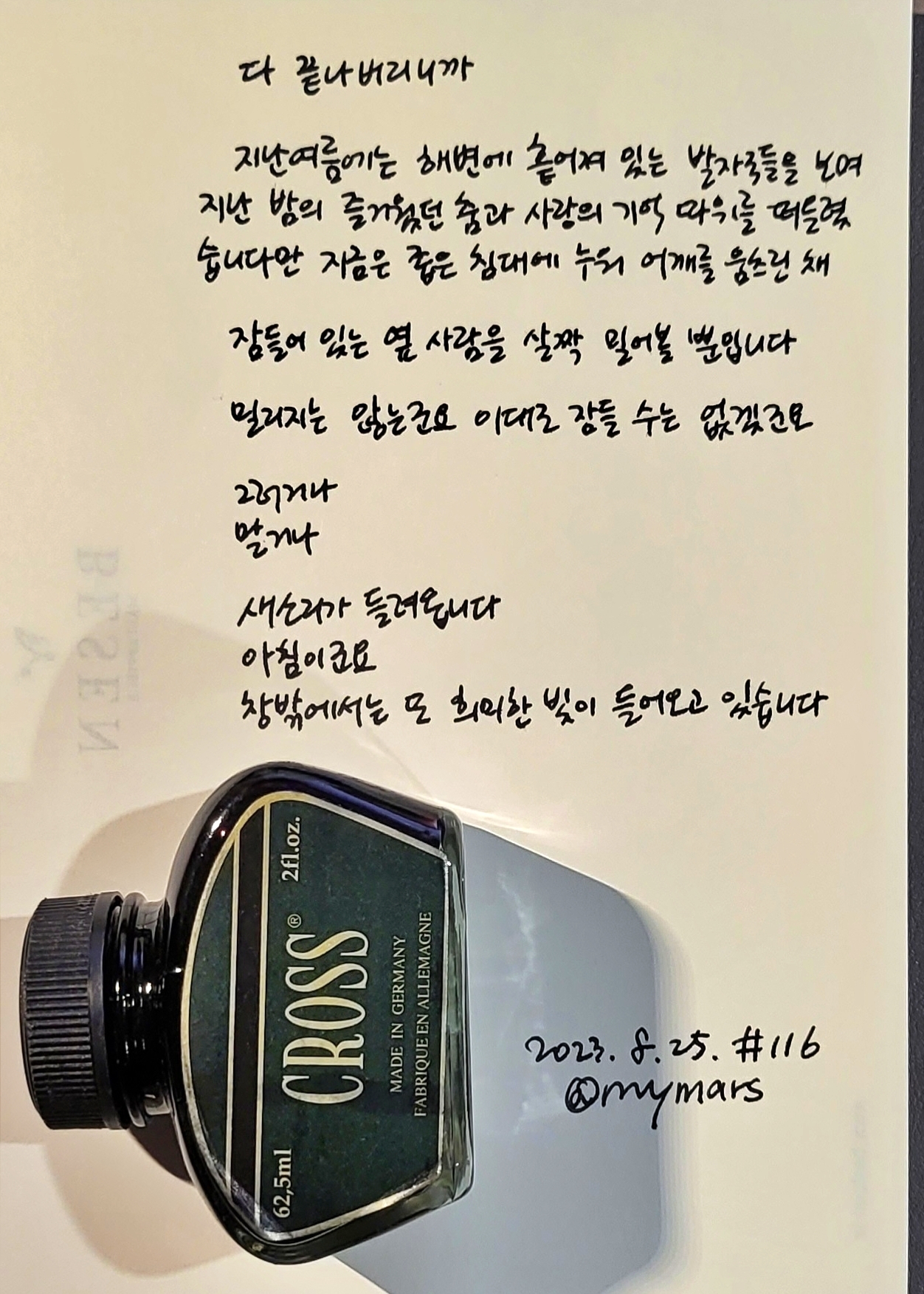 #이것이나의최선그것이나의최악 #황인찬 #사랑을위한되풀이 #너에게들려주는시 #poetrytoyou #시 #시낭독 #시낭송 #낭독일기 #시필사 #손글씨 #펜글씨 #만년필 #마이마르스 #나의화성 #mymars