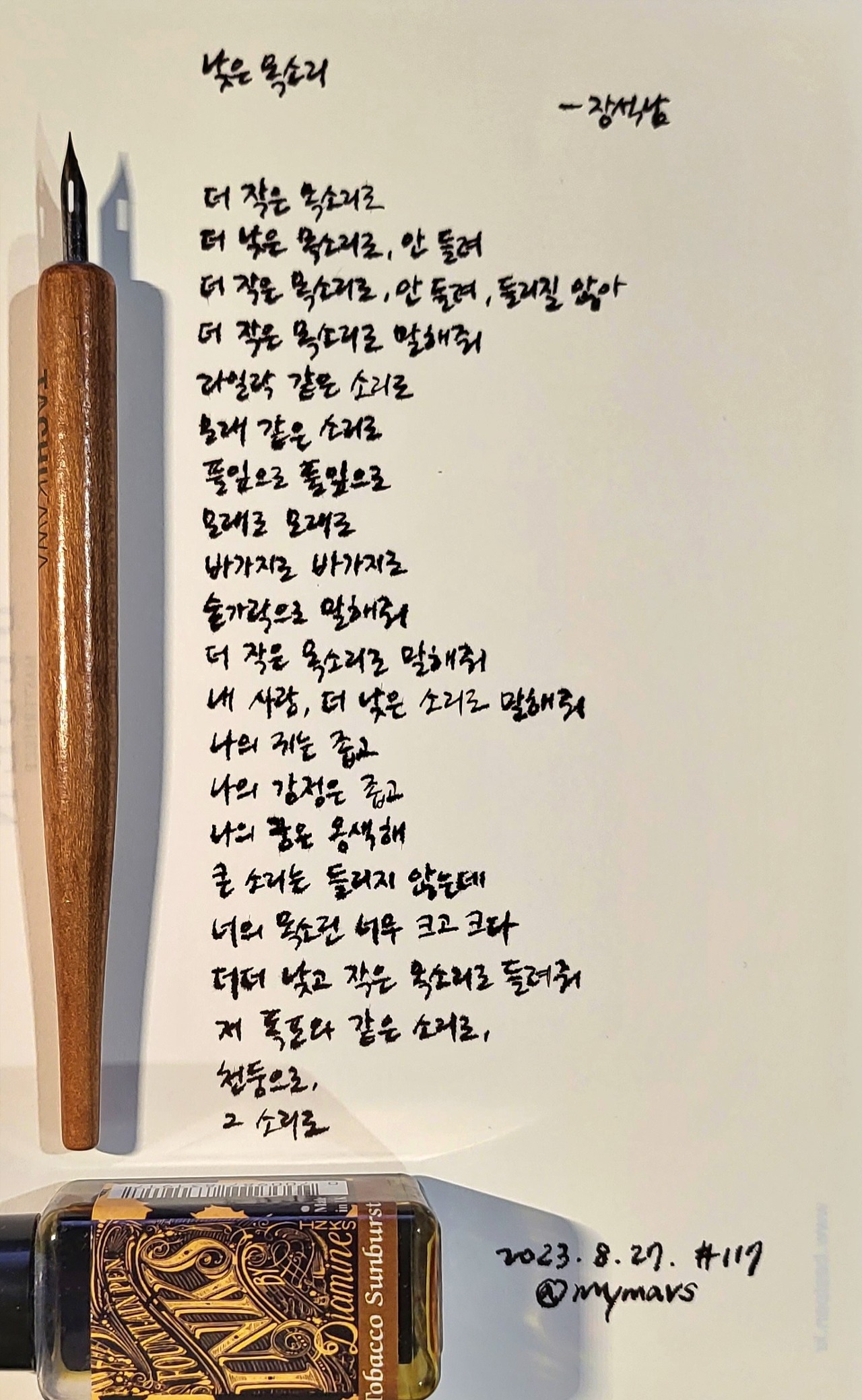 #낮은목소리 #장석남 #미소는어디로가시려는가 #너에게들려주는시 #poetrytoyou #시 #시낭독 #시낭송 #낭독일기 #시필사 #손글씨 #닙펜 #딥펜 #펜글씨 #마이마르스 #mymars #나의화성
