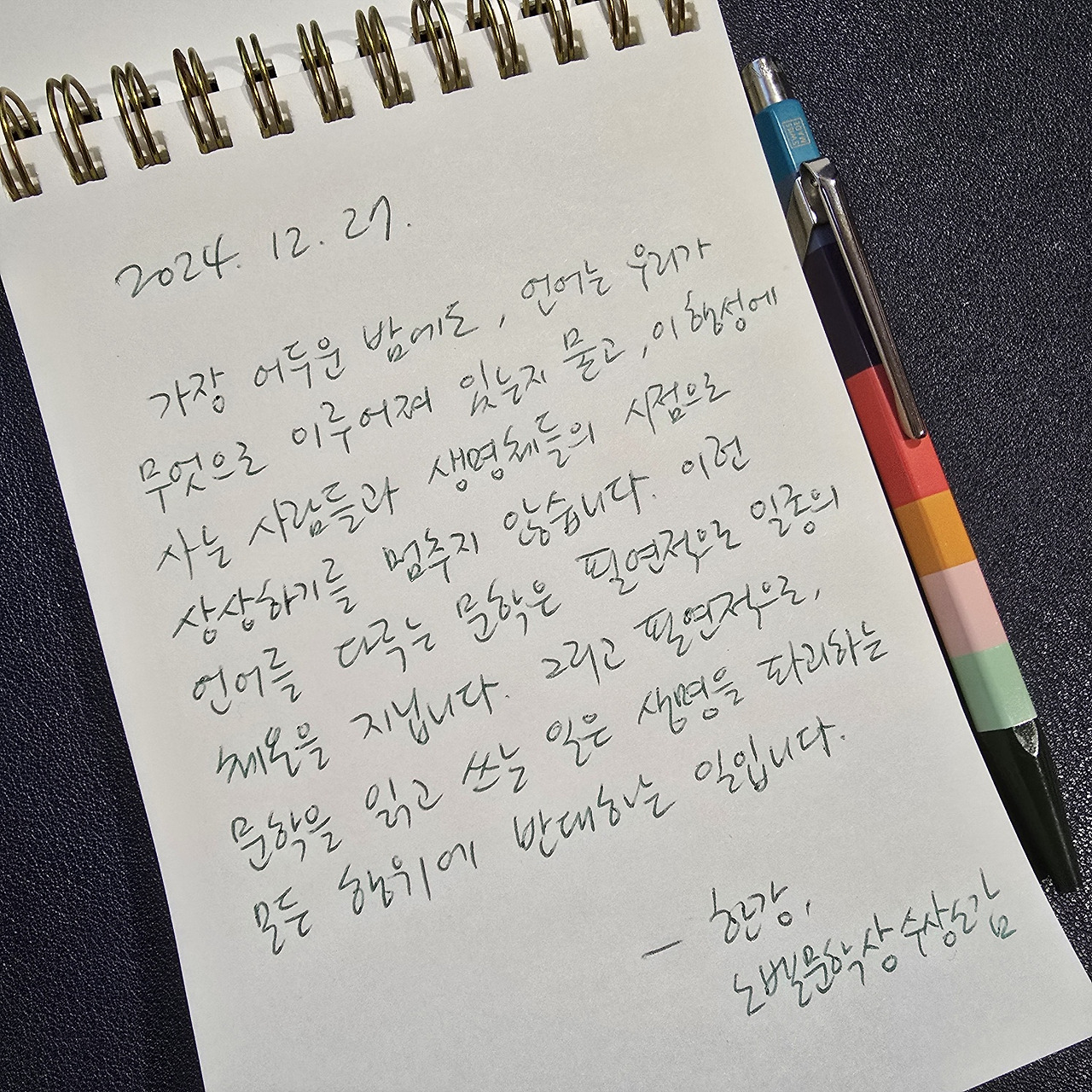 노벨문학상 수상자의 수상 소감을 실시간 뉴스로 들으며 환호하고 그 작품들을 모국어로 읽을 수 있다는 사실에 문학 붐이 일고 너나 할 것 없이 한강 작가 이야기를 나누며 신나게 보낼 수도 있었을 2024년 연말이 이렇게 지나간다.