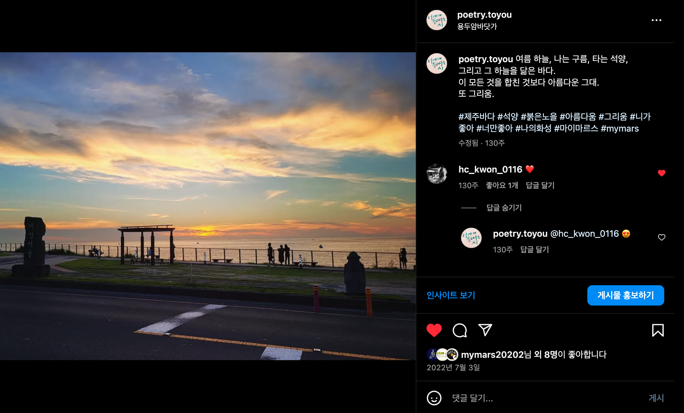 #제주바다 #석양 #붉은노을 #아름다움 #그리움 #니가좋아 #너만좋아 #나의화성 #마이마르스 #mymars