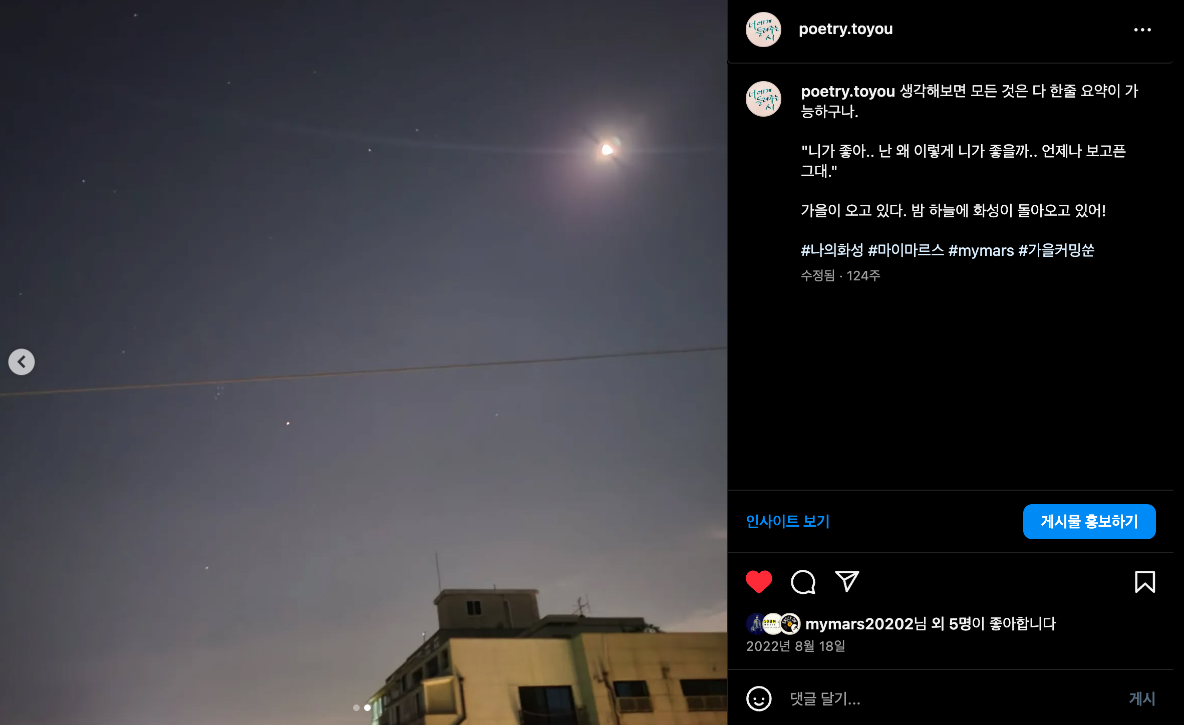 가을이 오고 있다. 밤 하늘에 화성이 돌아오고 있어!
