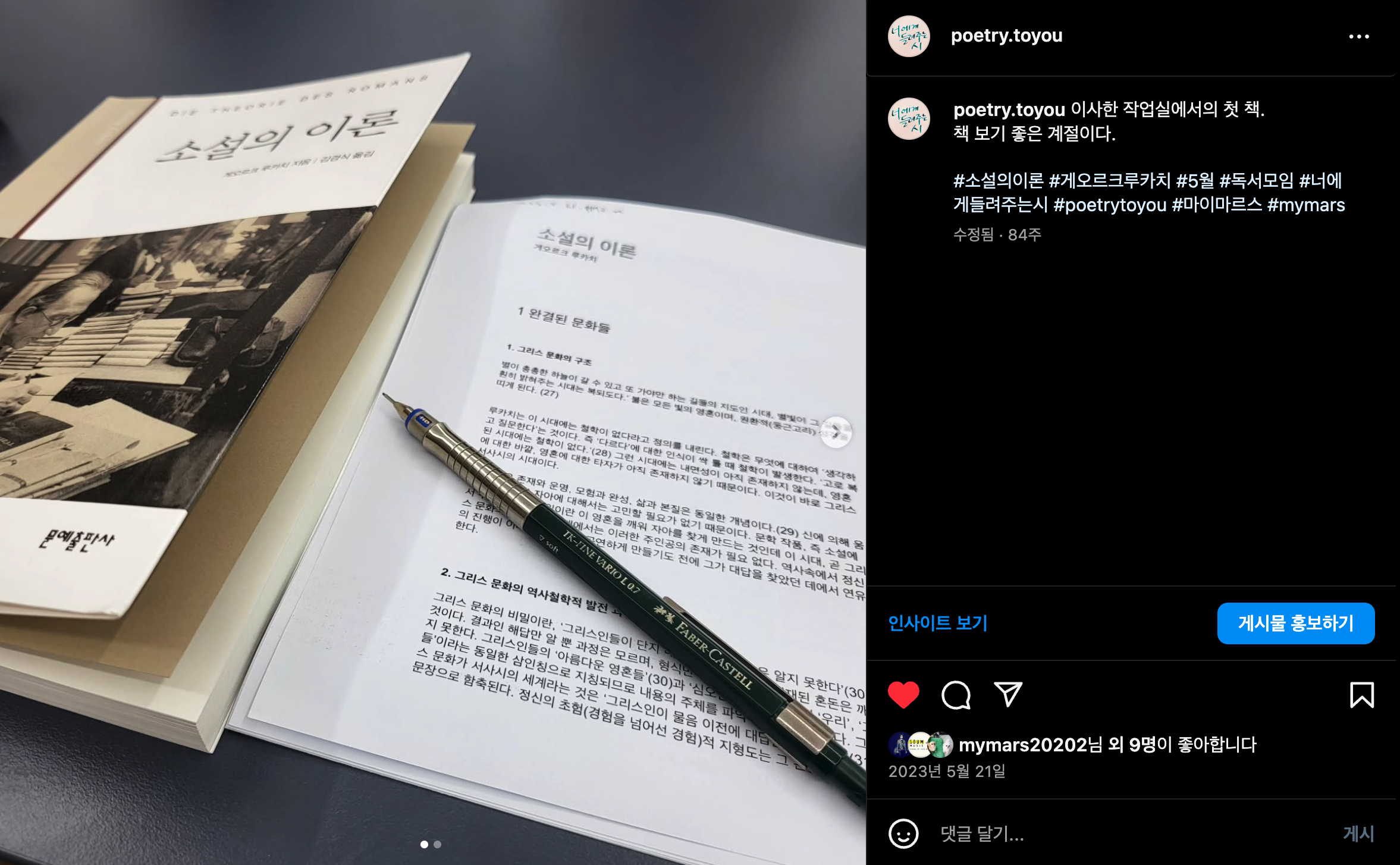 #소설의이론 #게오르크루카치 #5월 #독서모임 #너에게들려주는시 #poetrytoyou #마이마르스 #mymars