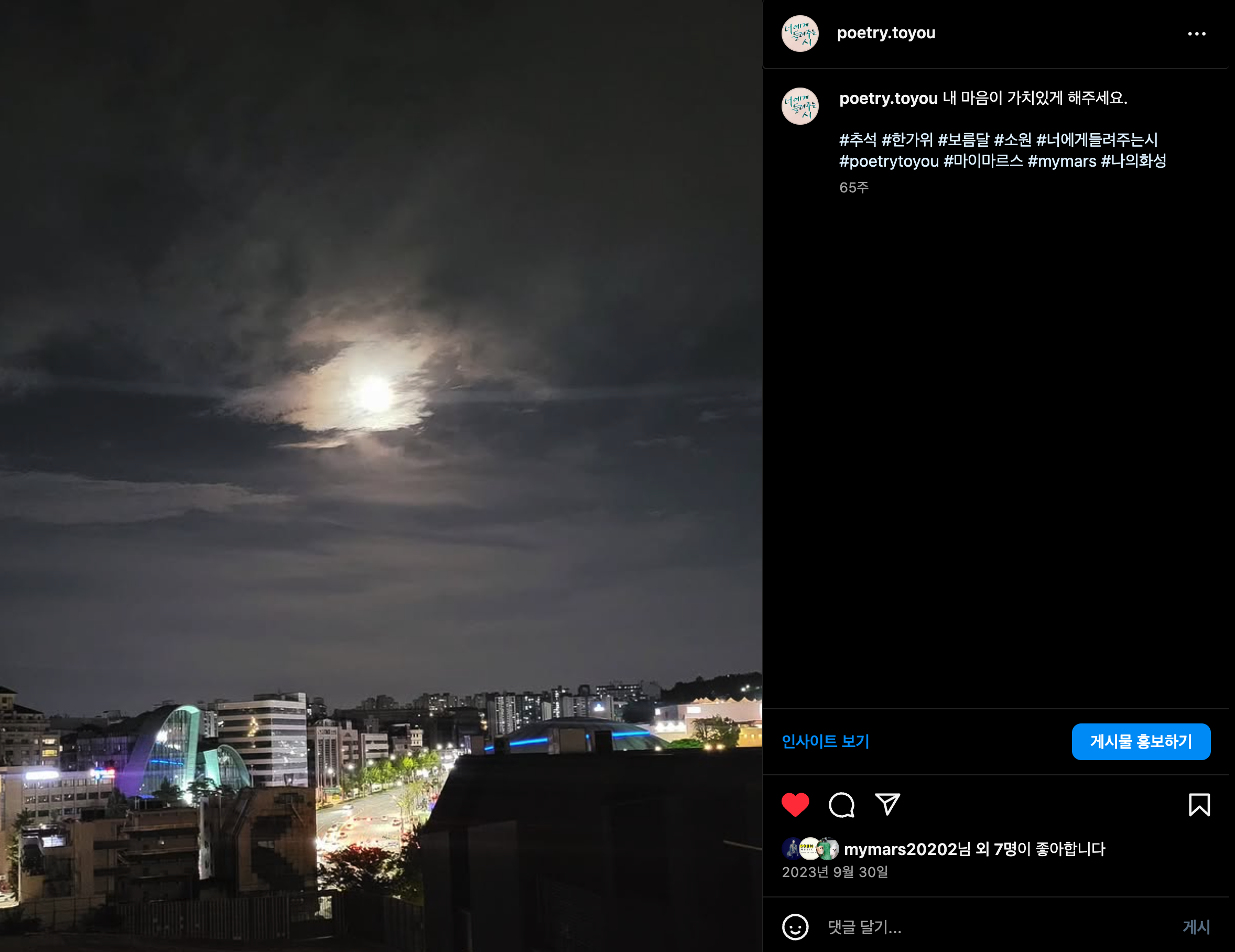 #추석 #한가위 #보름달 #소원 #너에게들려주는시 #poetrytoyou #마이마르스 #mymars #나의화성
