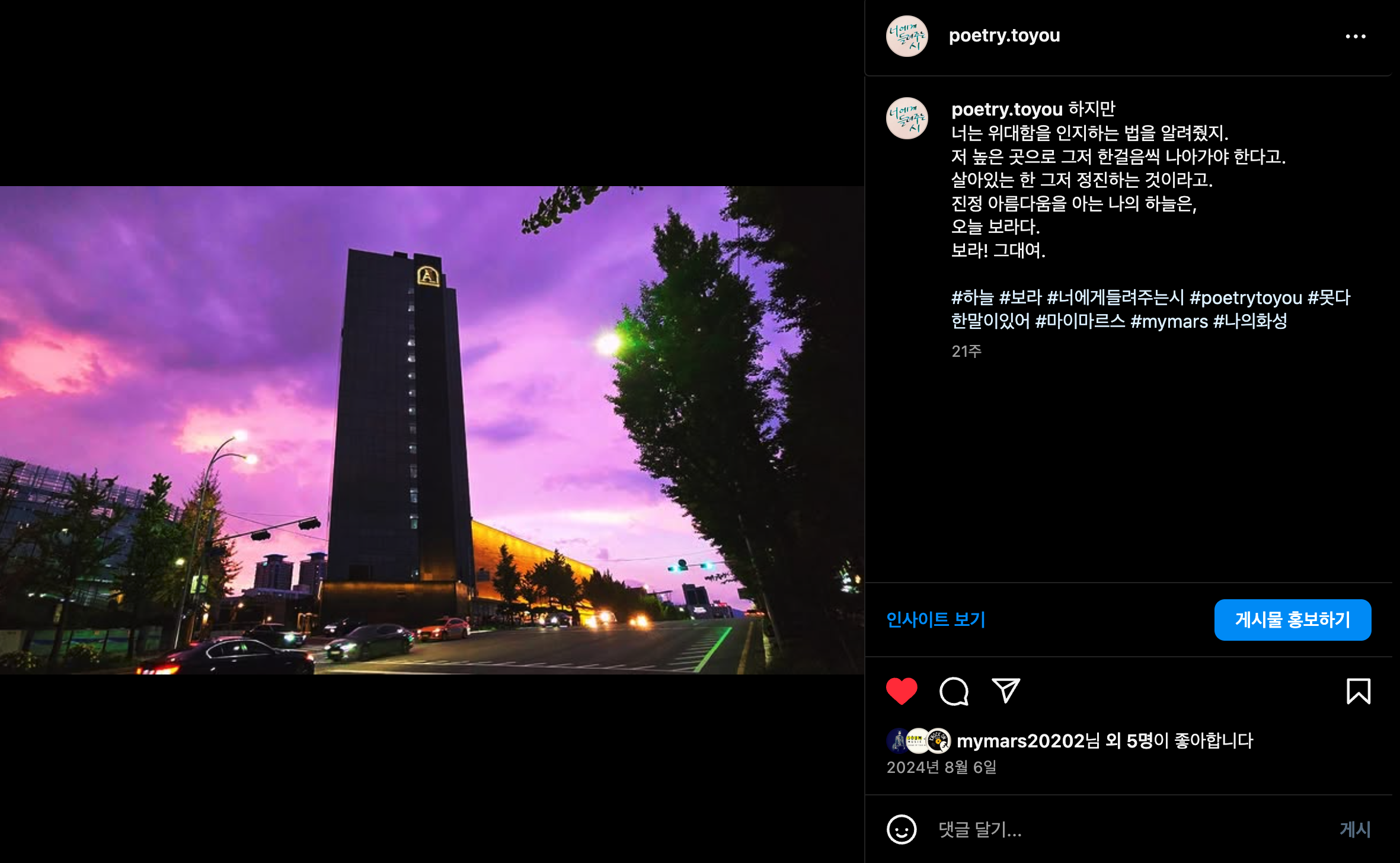 #하늘 #보라 #너에게들려주는시 #poetrytoyou #못다한말이있어 #마이마르스 #mymars #나의화성