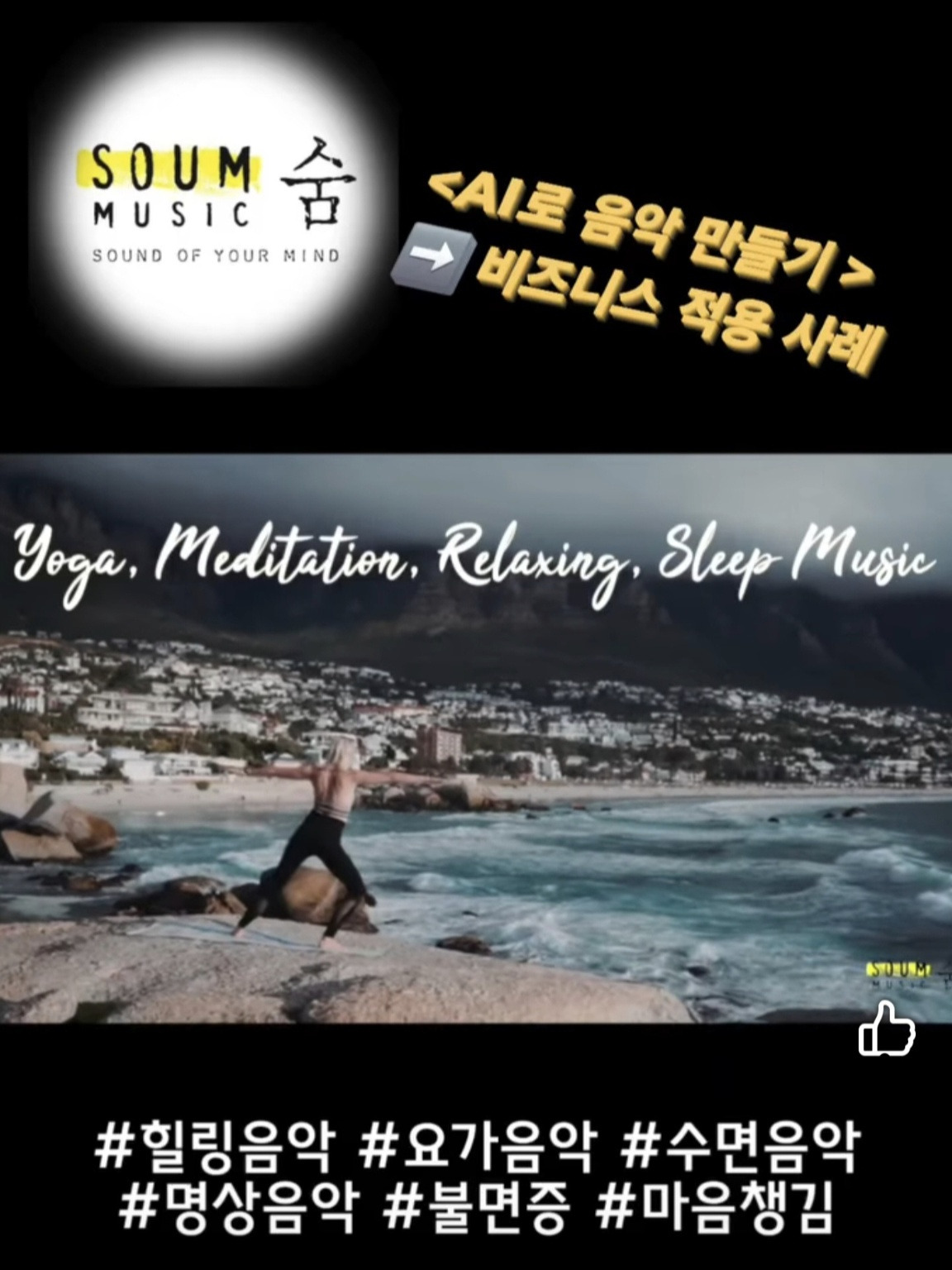이번 과제의 목표는 AI로 만든 음악을 비즈니스에 접목해 보는 것이라, 요가나 명상 수업에서 배경음악으로 활용할 수 있도록 차분하고 편안한 분위기의 곡을 Suno로 만들어봤다.