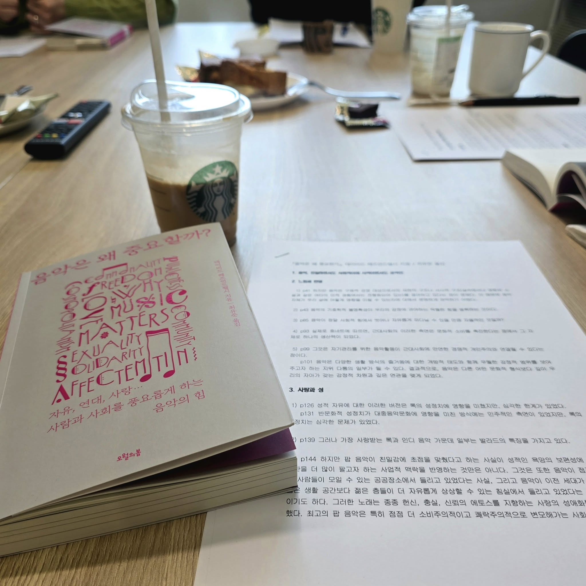 이번 달 미학 스터디에서는 음악사회학 분야의 최고 권위자 중 한 명인 데이비드 헤즈먼드챌시(David Hesmondhalgh)의 저서 『음악은 왜 중요할까?(Why Music Matters)』를 읽고 의미 있는 대화를 나눴다.