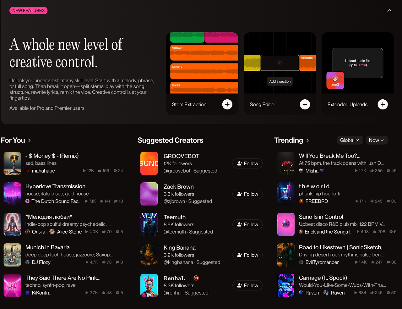 지난주, AI 음악 생성 플랫폼 수노(Suno)가 창작자들에게 "완전히 새로운 차원의 창작 제어권(A Whole New Level of Creative Control)"을 제공하는 혁신적인 업데이트를 발표했습니다.
