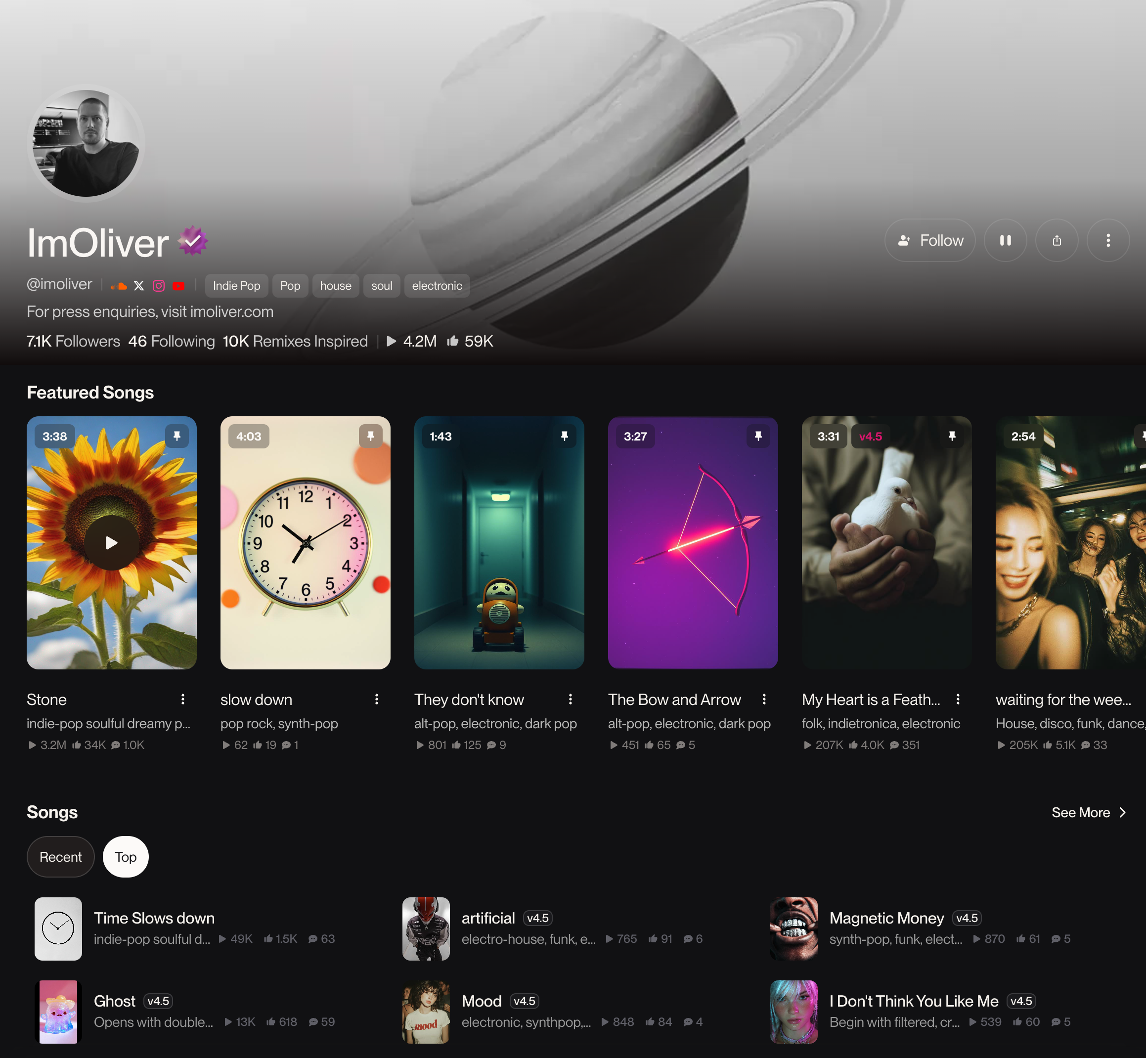 ImOliver는 Suno 플랫폼에서 텍스트 프롬프트만으로 음악을 창작해 온 아티스트다.
